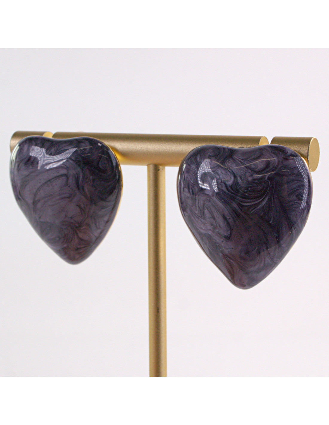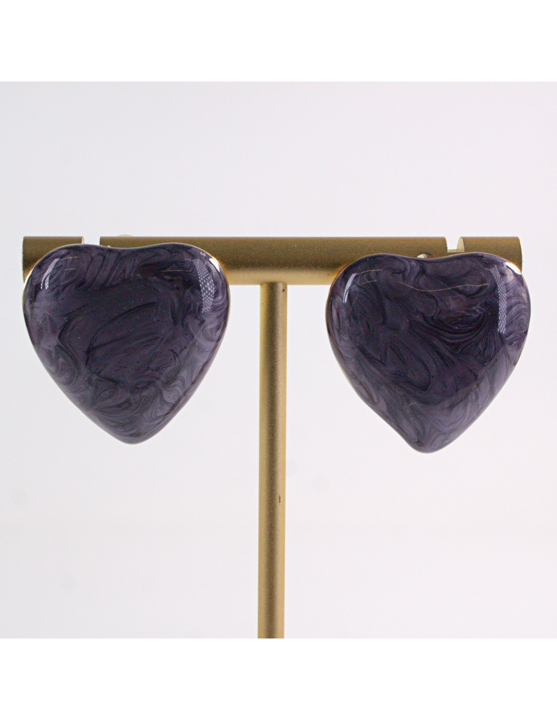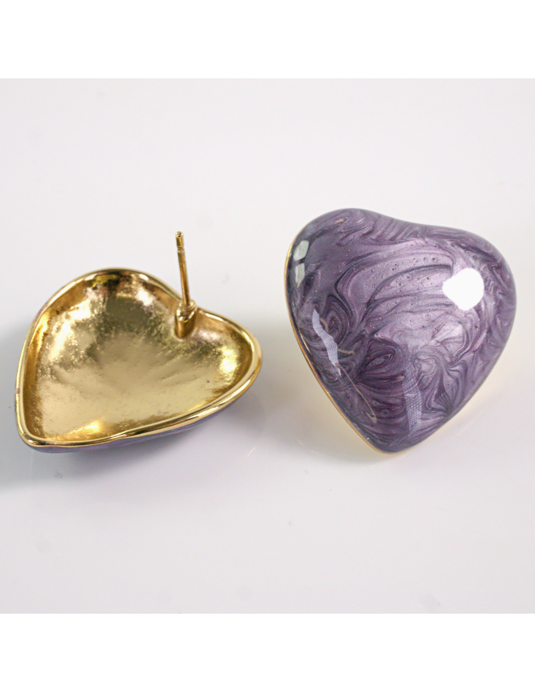 Kolczyki ZŁOTE SERCE FIOLETOWE SERDUSZKO STAL CHIRURGICZNA LOLITA AKCESORIA