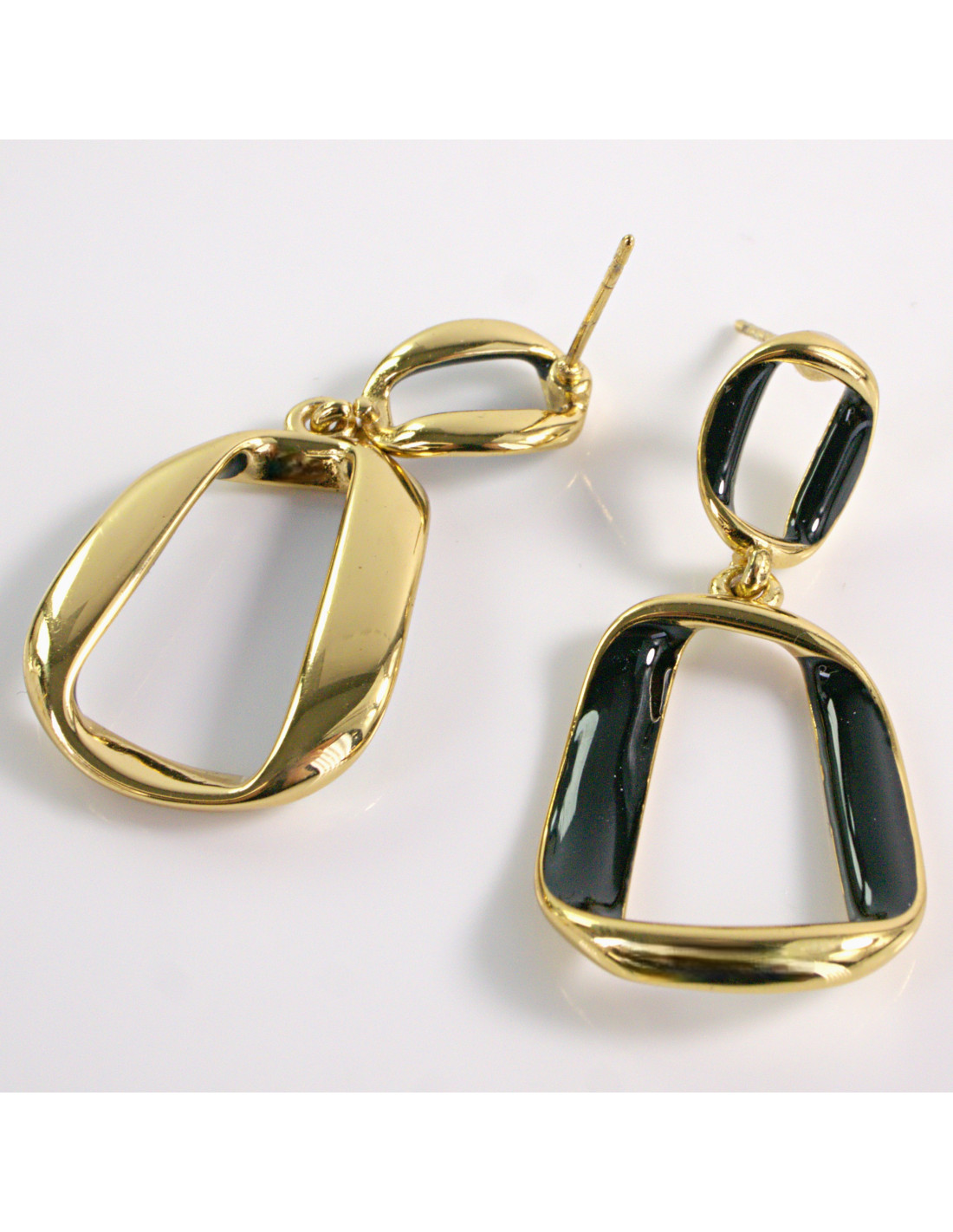 Kolczyki ZŁOTE WISZĄCE CZARNE STAL CHIRURGICZNA LOLITA AKCESORIA