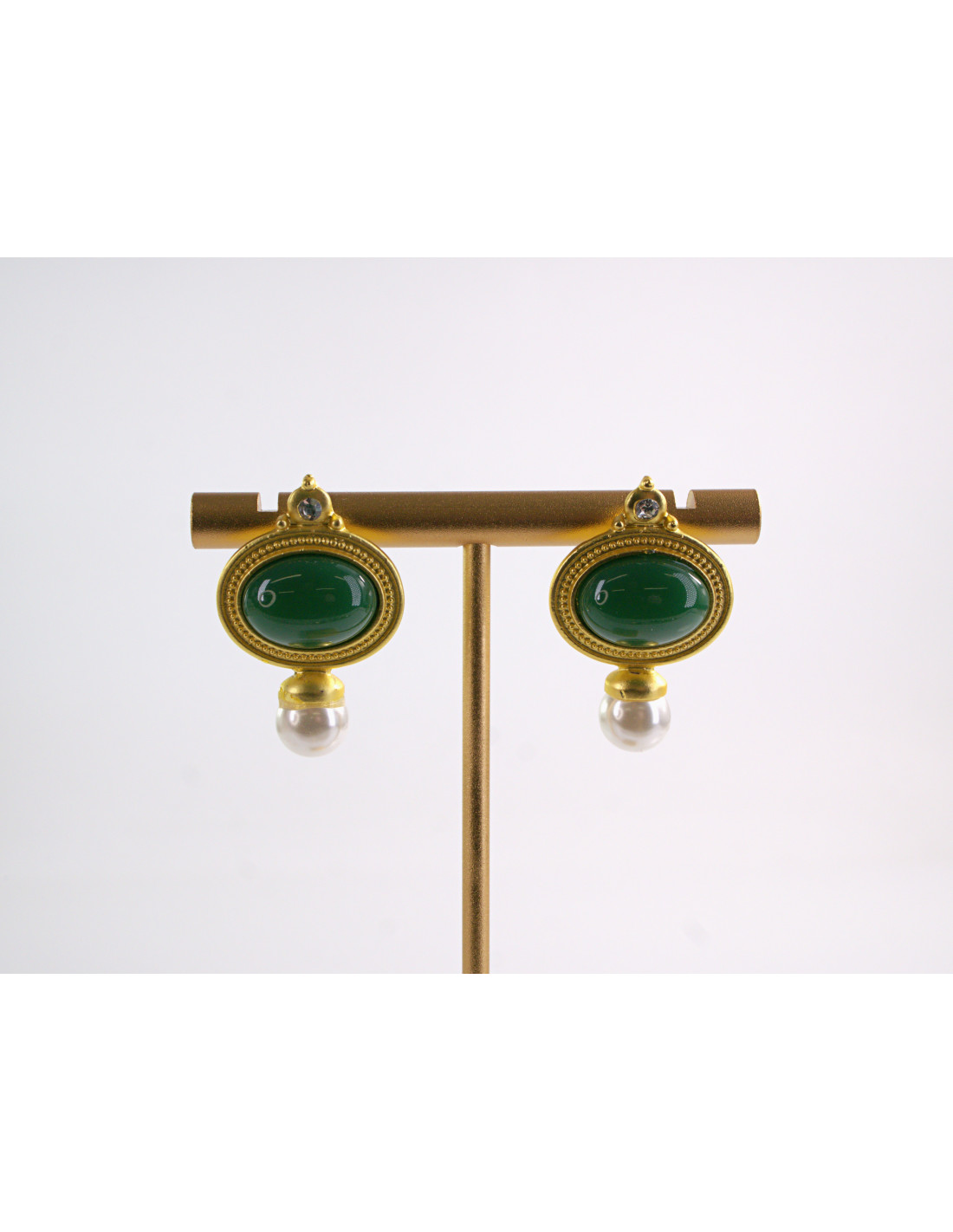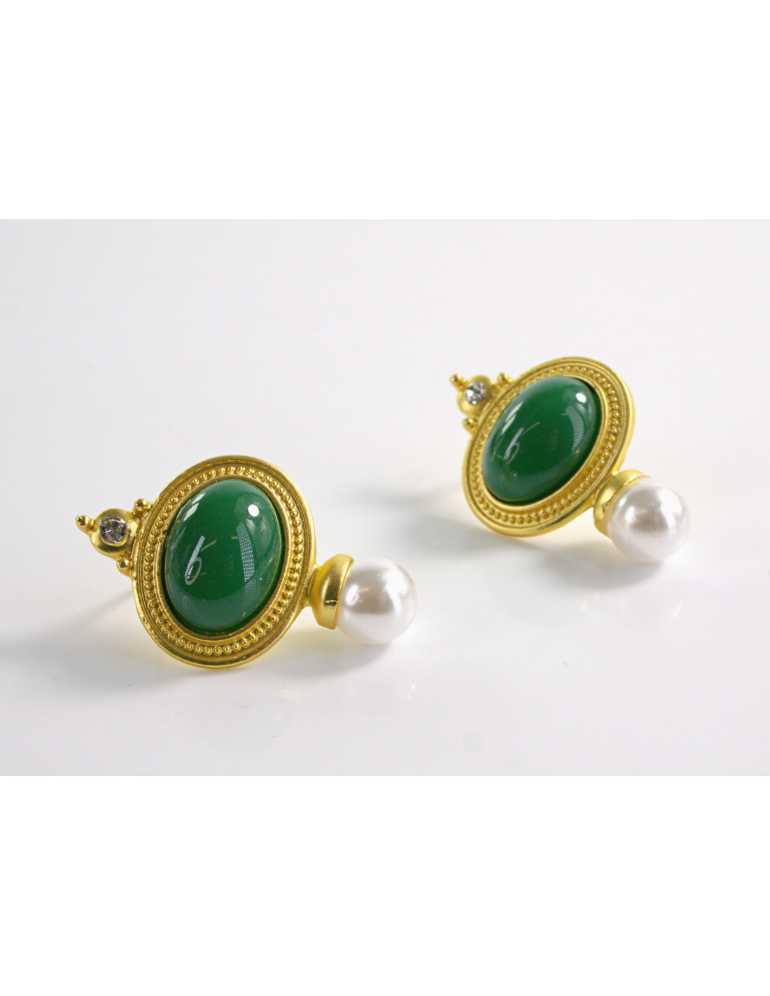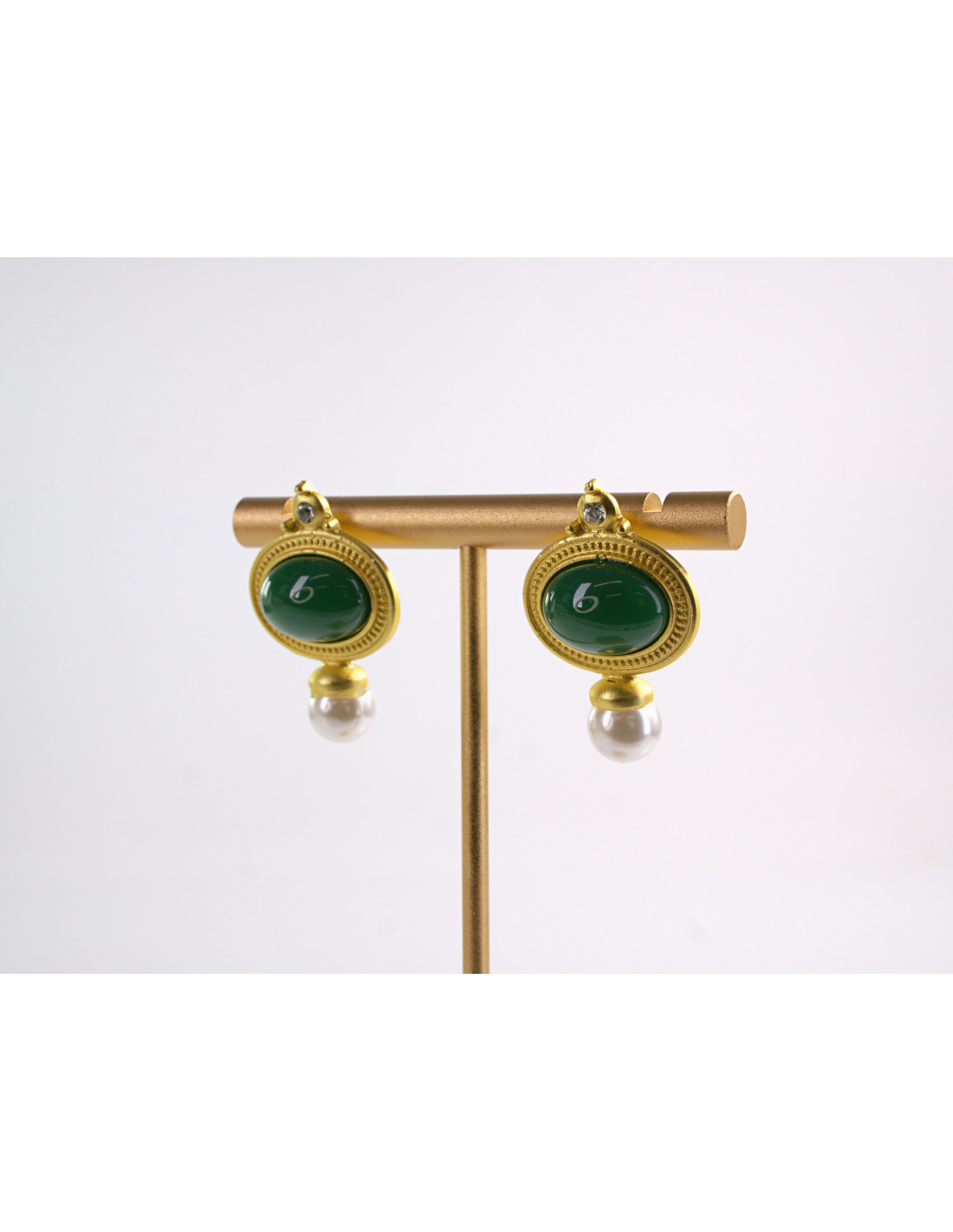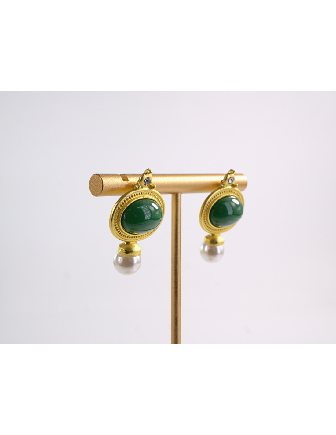 Kolczyki ZIELONE VINTAGE Z PERŁĄ LOLITA AKCESORIA srebrny sztyft 925