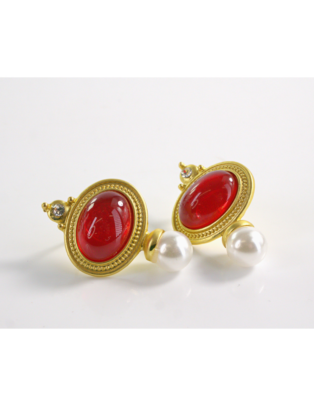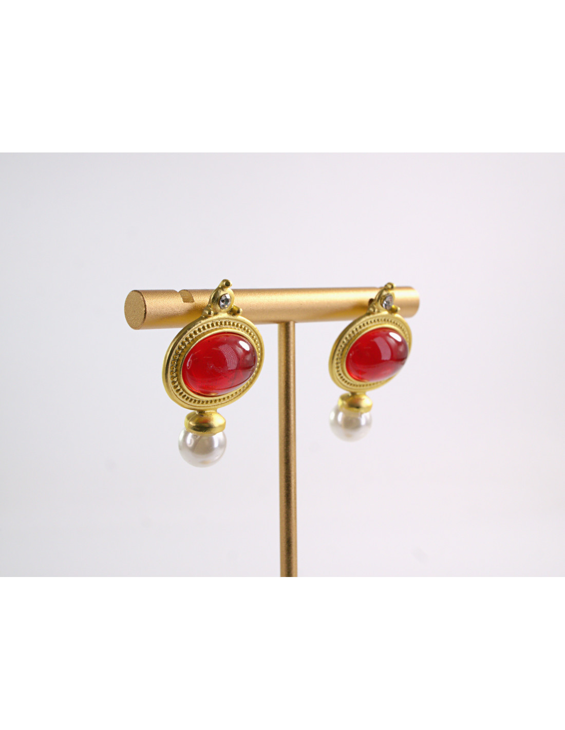 Kolczyki CZERWONE VINTAGE Z PERŁĄ LOLITA AKCESORIA srebrny sztyft 925