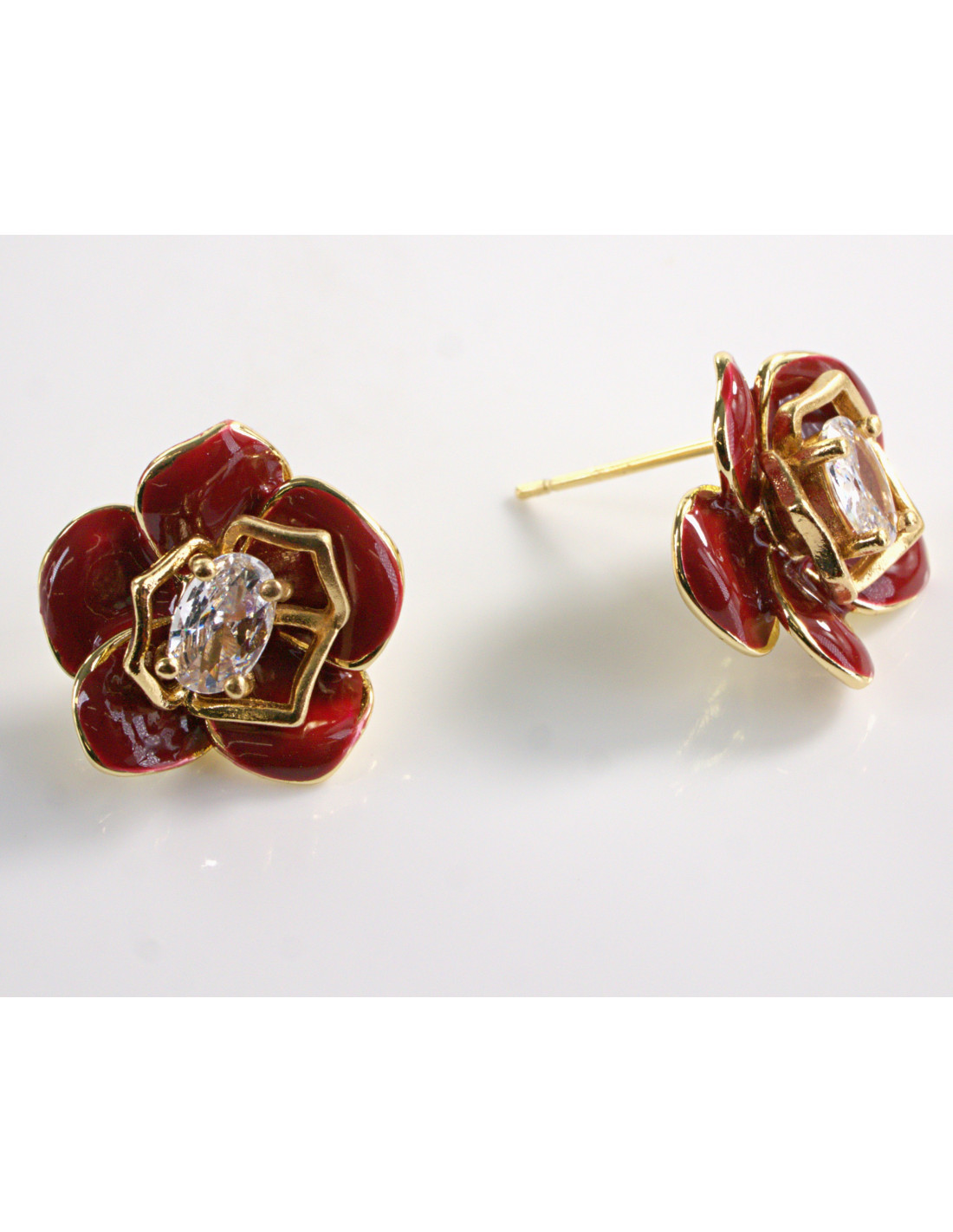 Kolczyki BORDOWE KWIATY KWIATKI SREBRNY SZTYFT 925 LOLITA AKCESORIA