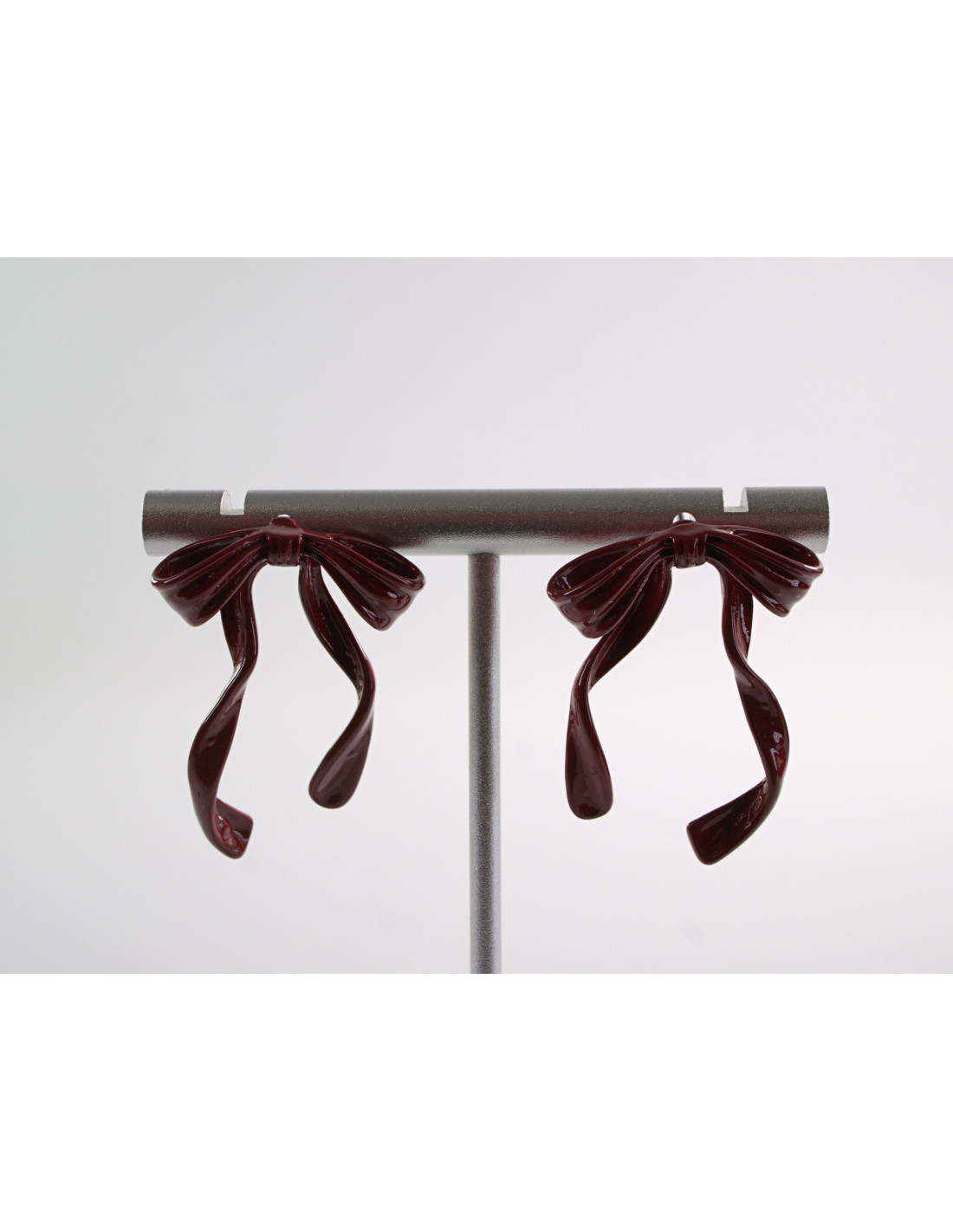 Kolczyki BORDOWE ASYMETRYCZNE KOKARDKI LOLITA AKCESORIA srebrny sztyft 925