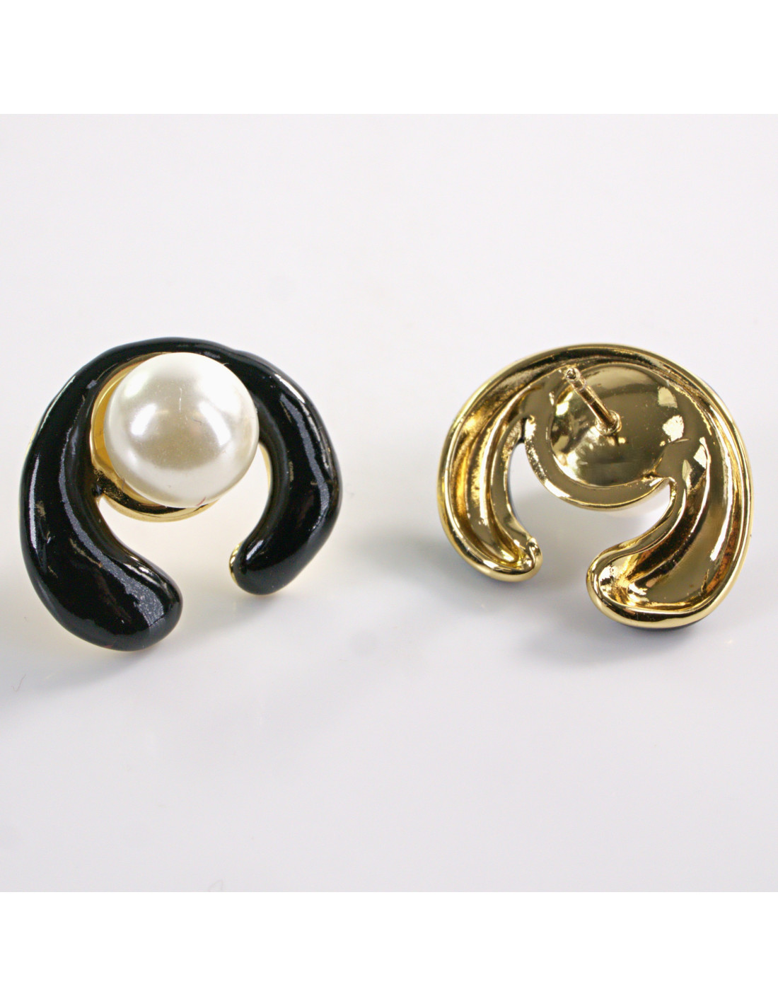 Kolczyki CZARNE ZAWIJASY Z PERŁĄ LOLITA AKCESORIA STAL CHIRURGICZNA