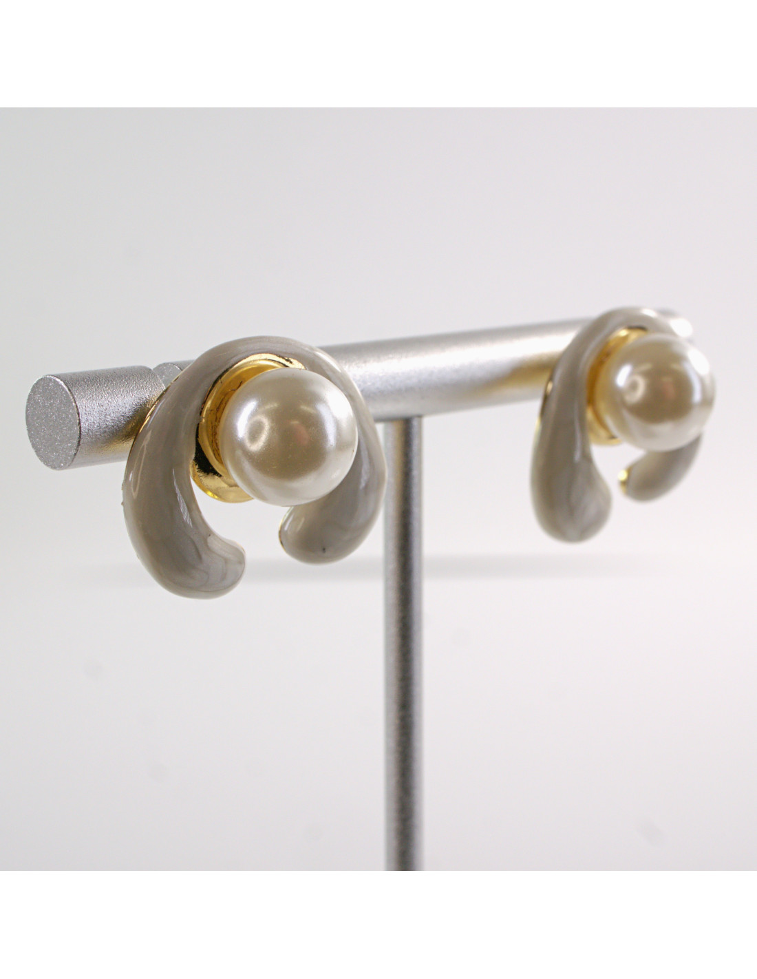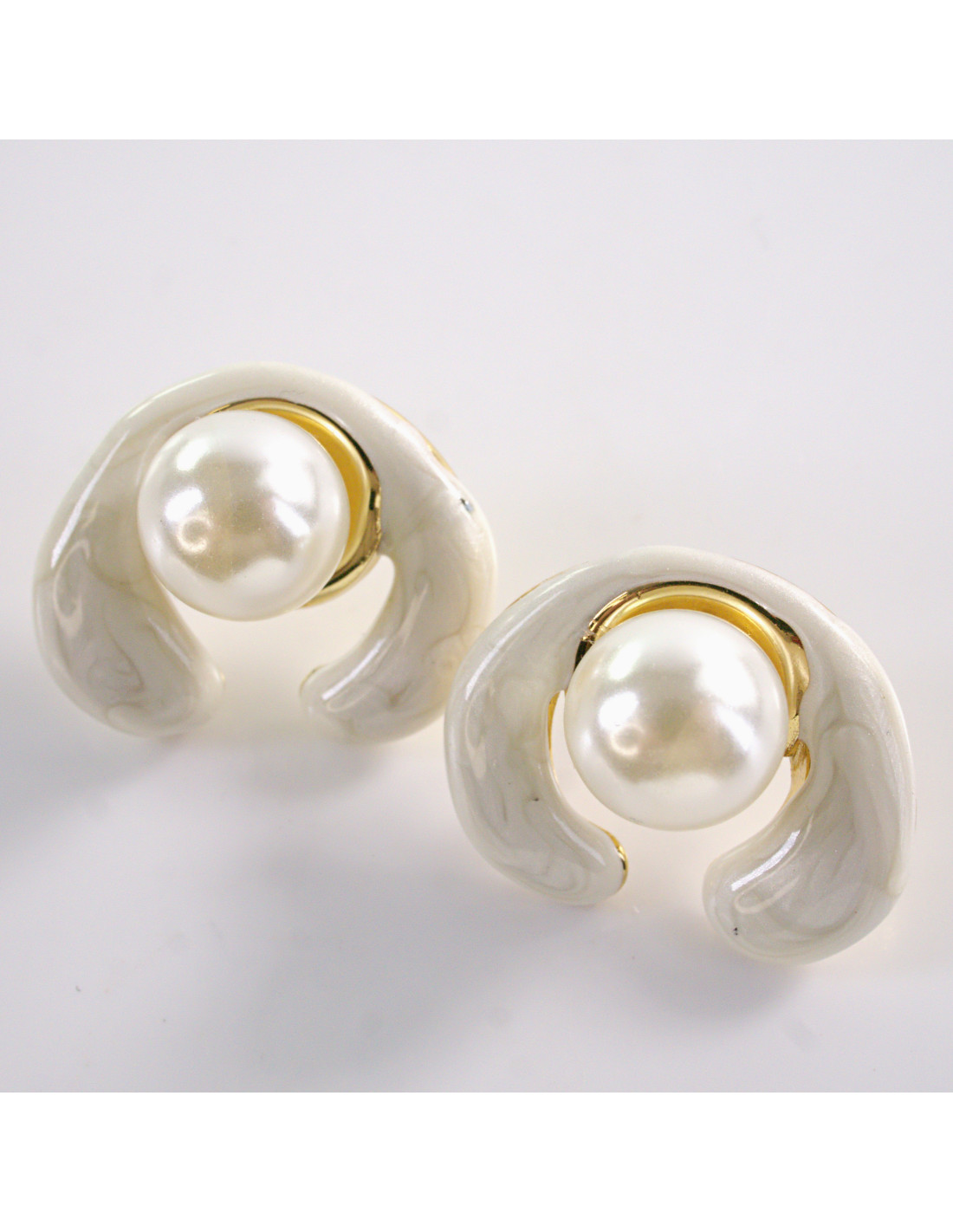 Kolczyki BIAŁE ZAWIJASY Z PERŁĄ LOLITA AKCESORIA STAL CHIRURGICZNA