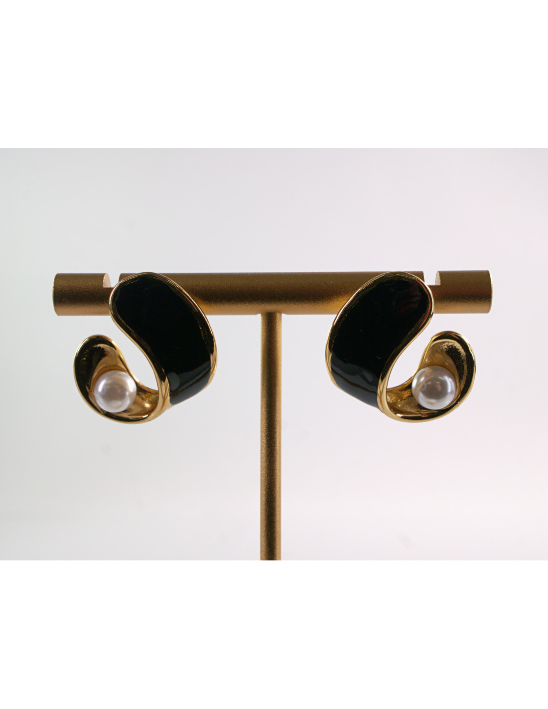 Kolczyki CZARNE ZAWIJASY Z PERŁĄ LOLITA AKCESORIA STAL CHIRURGICZNA