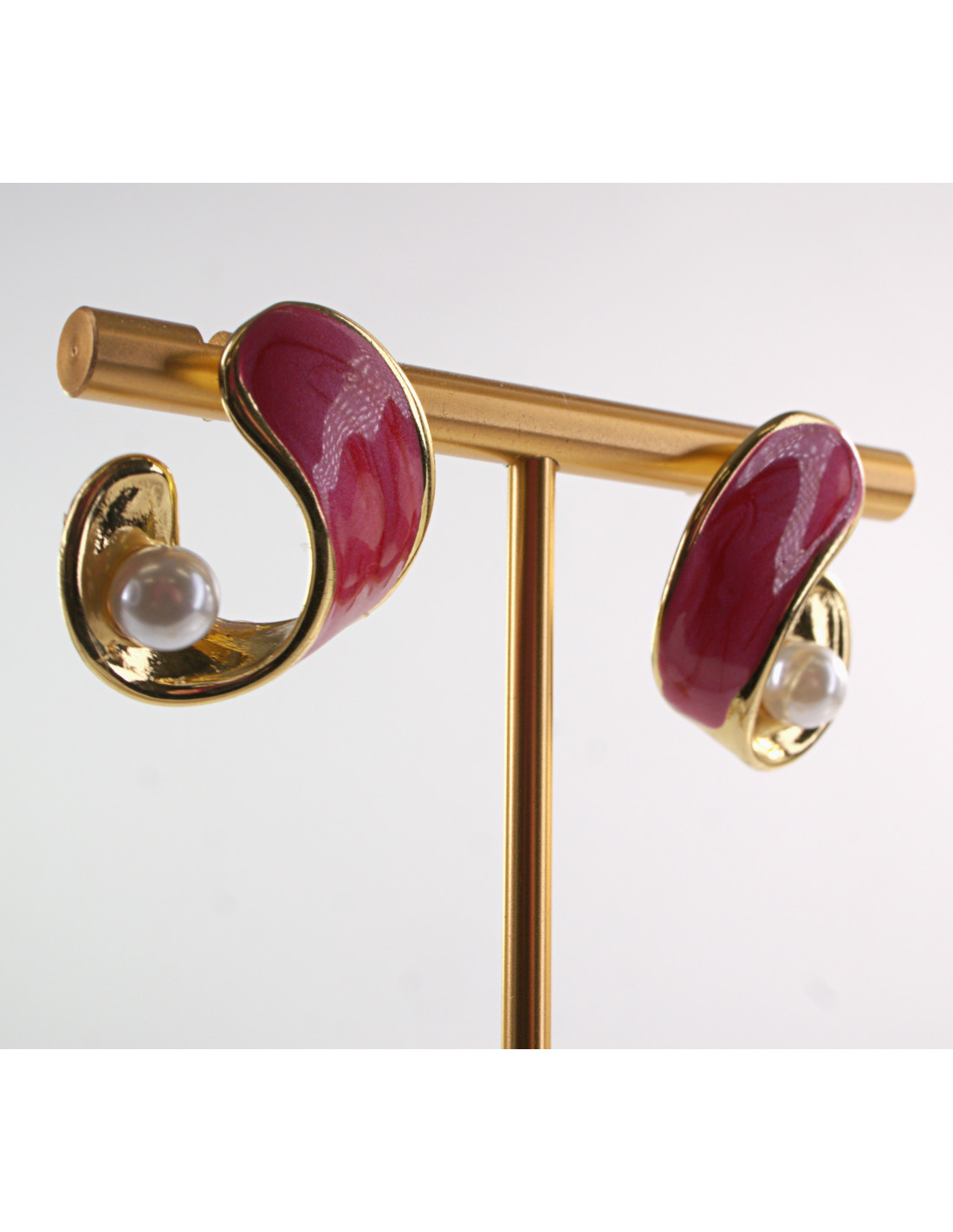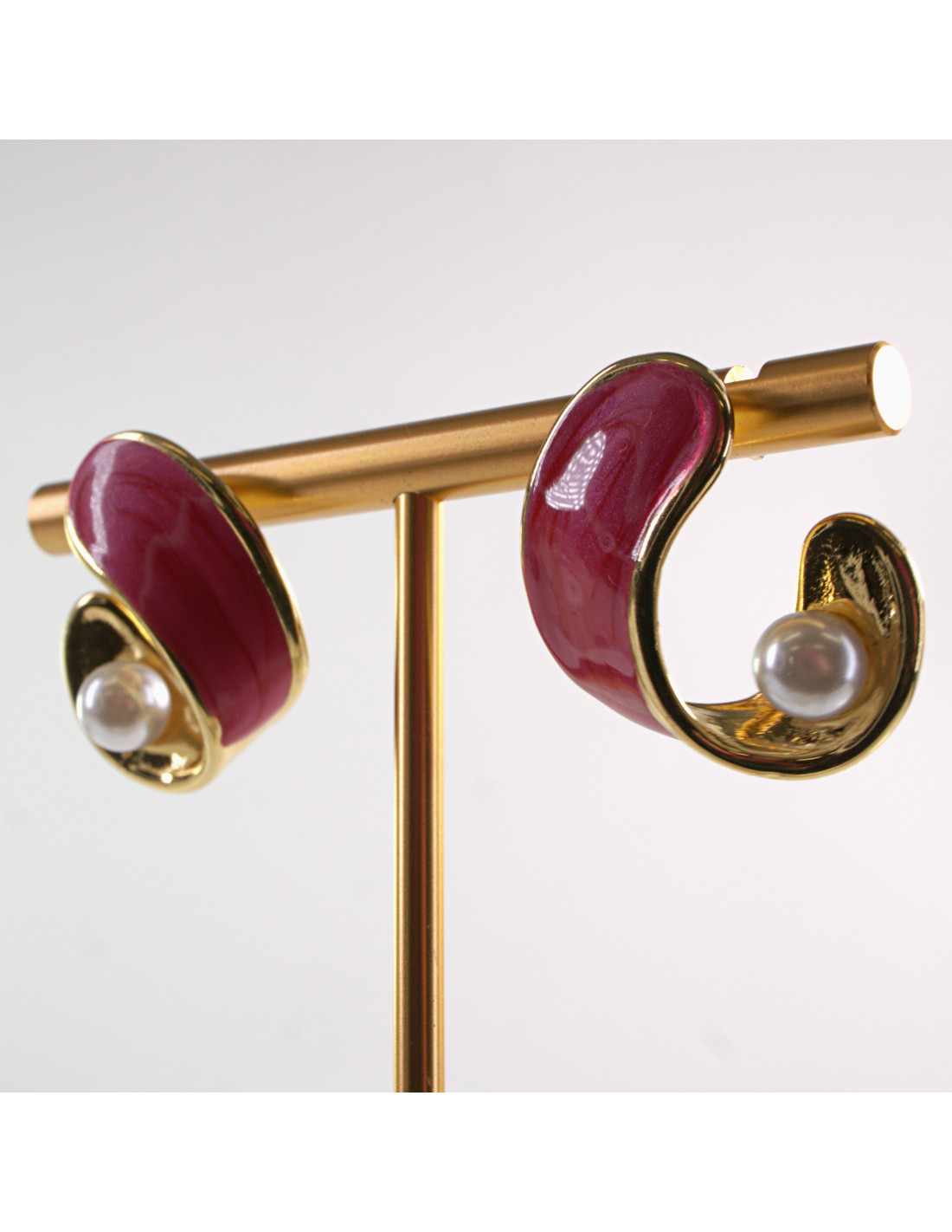 Kolczyki CZERWONE ZAWIJASY Z PERŁĄ LOLITA AKCESORIA STAL CHIRURGICZNA