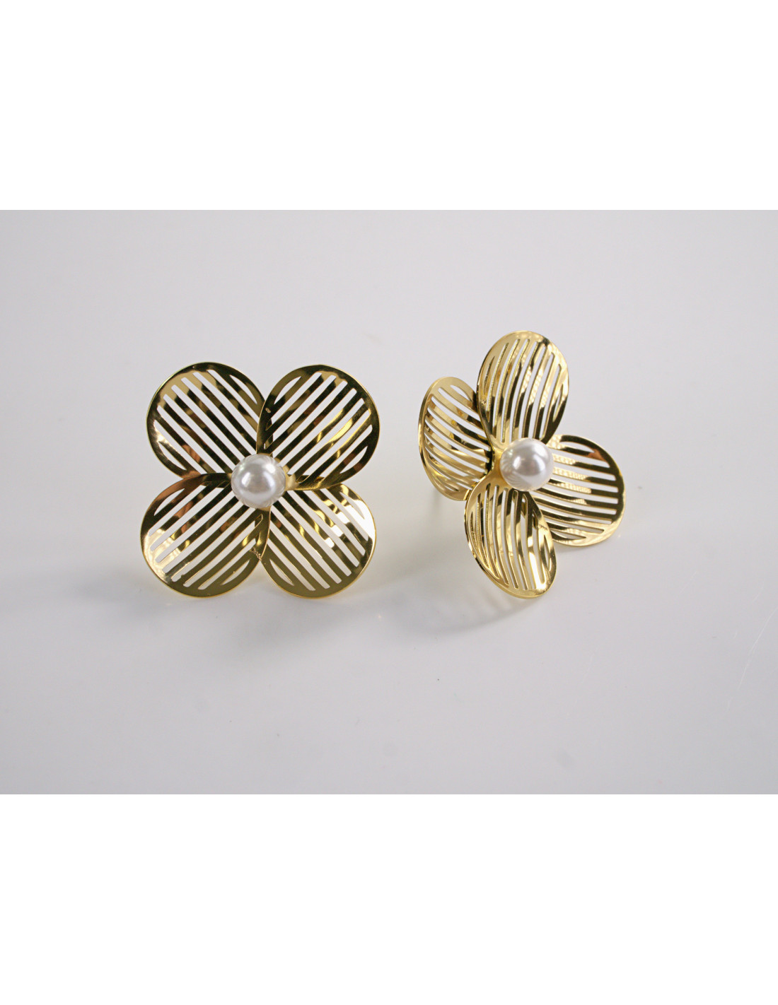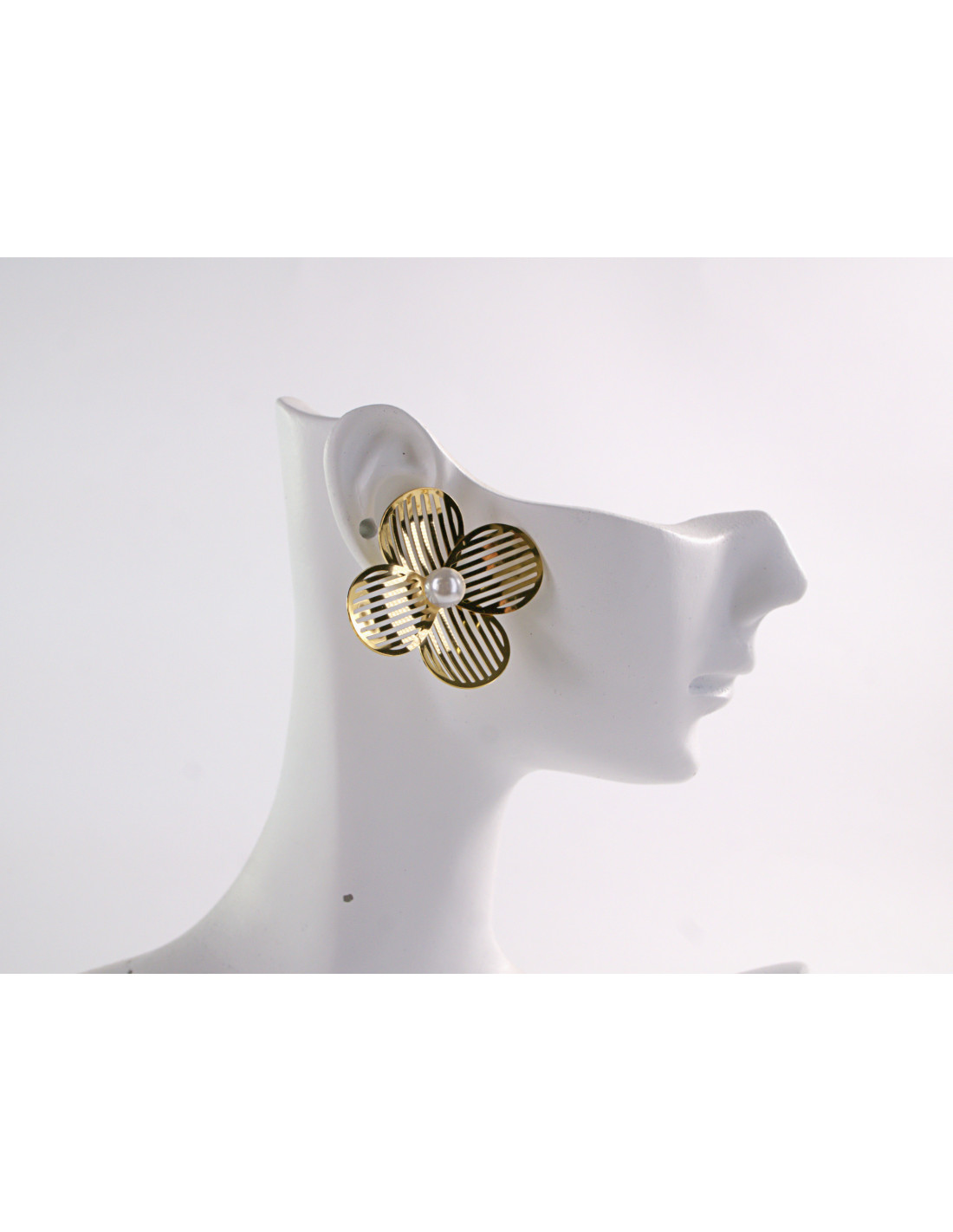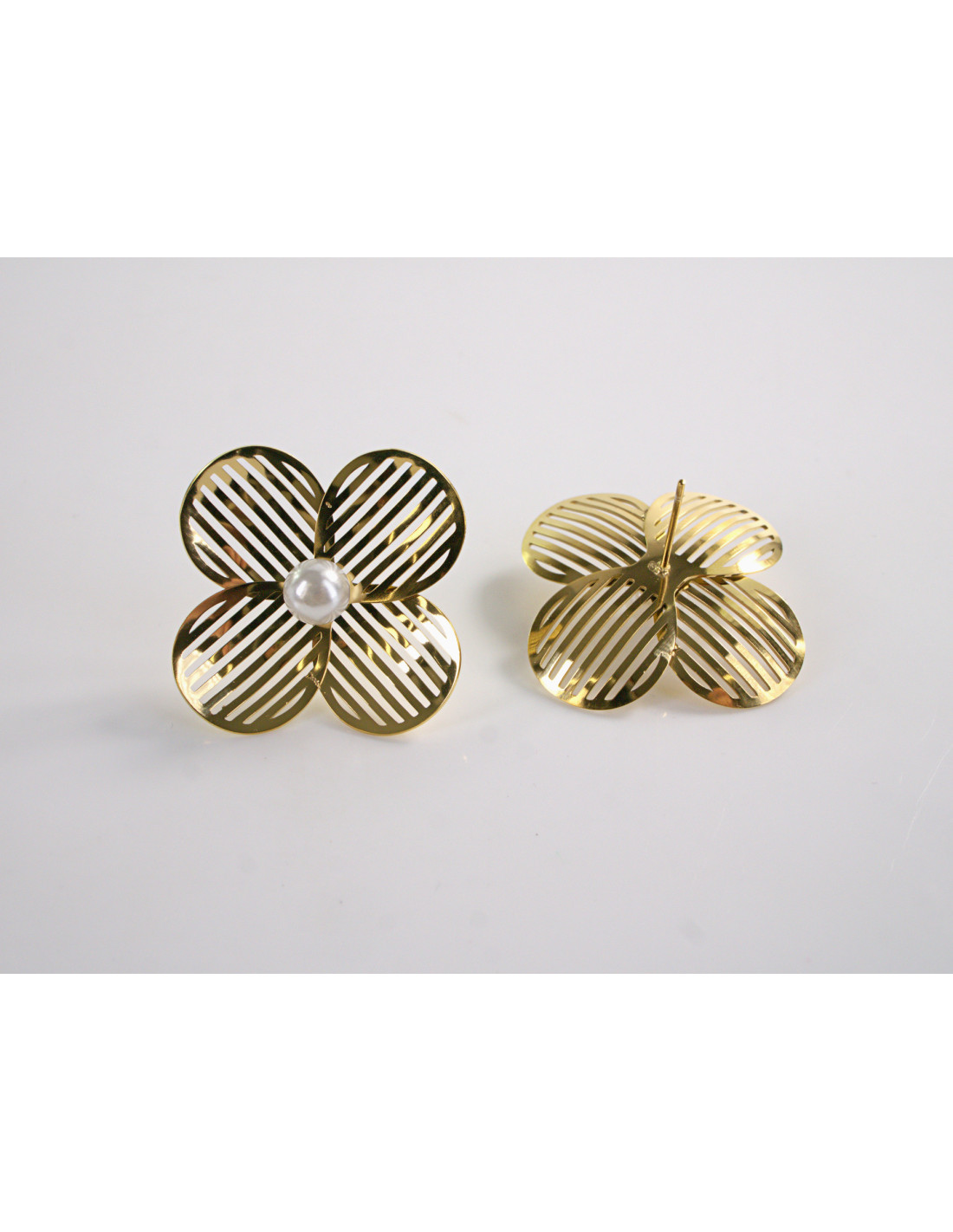 Kolczyki ZŁOTE AŻUROWE KWIATY Z PEREŁKĄ LOLITA AKCESORIA STAL CHIRURGICZNA