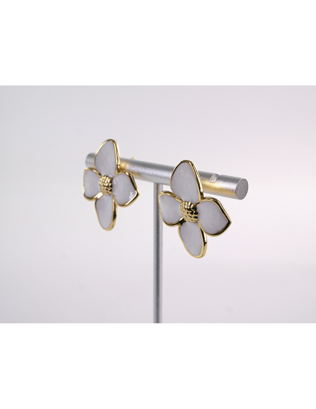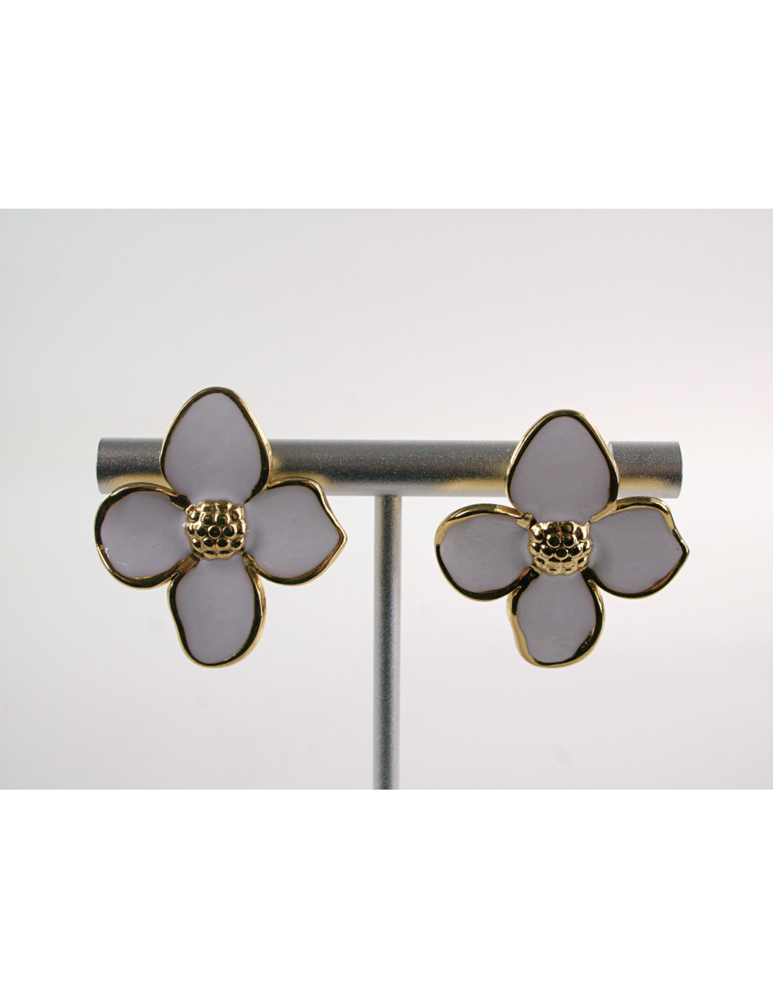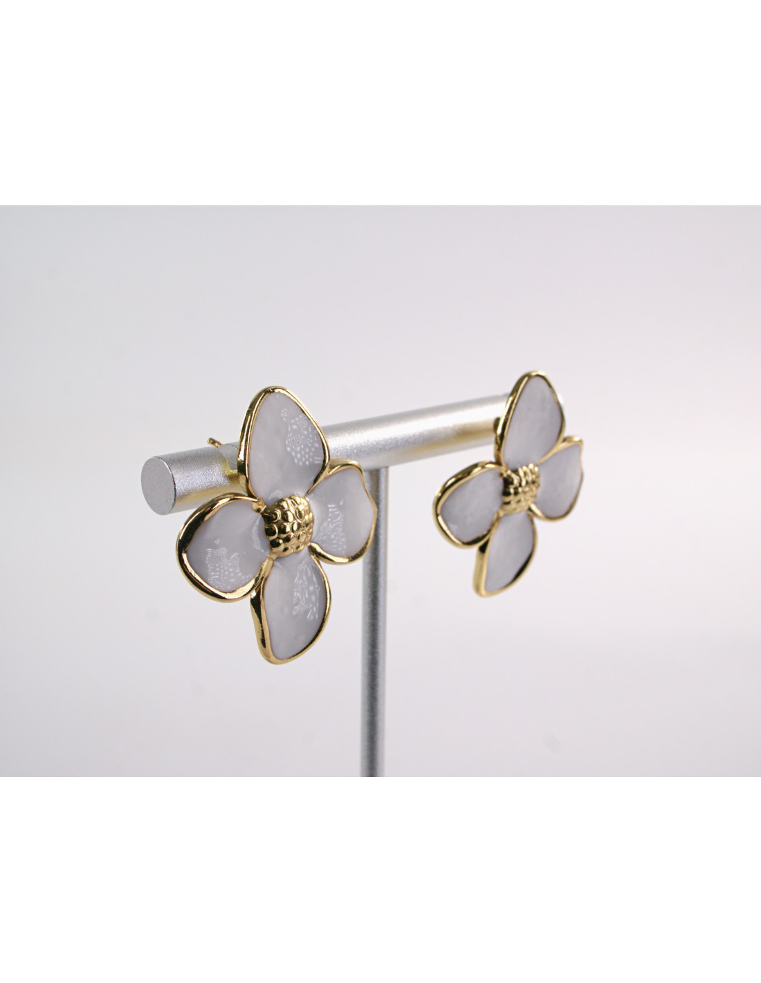 Kolczyki ZŁOTO - BIAŁE KWIATY KWIATKI CHIRURGICZNA LOLITA AKCESORIA