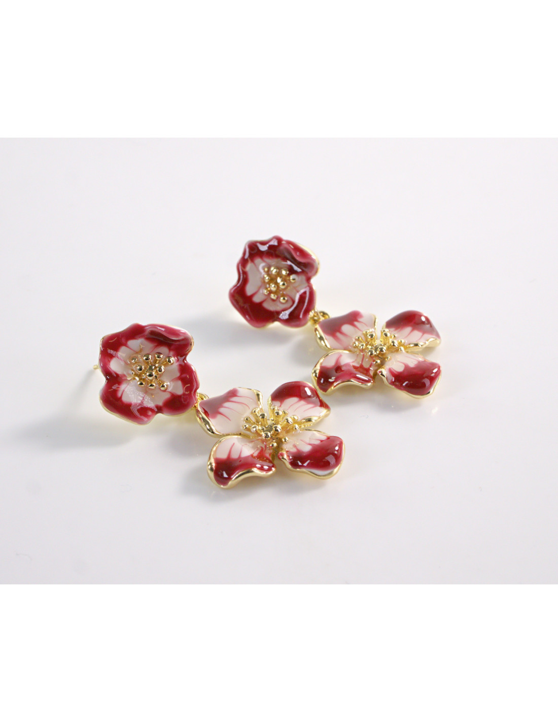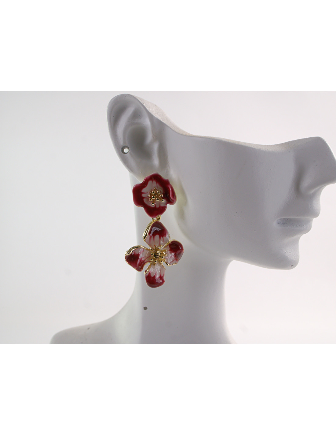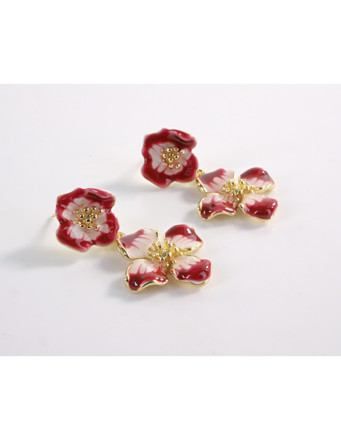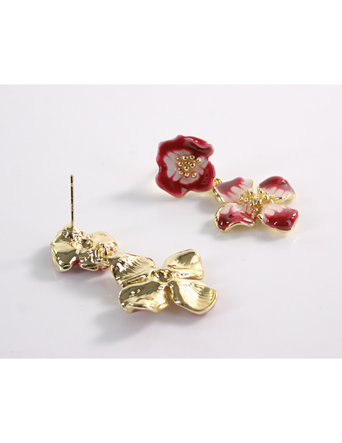 Kolczyki CZERWONO- RÓŻOWE KWIATKI LOLITA AKCESORIA srebrny sztyft 925