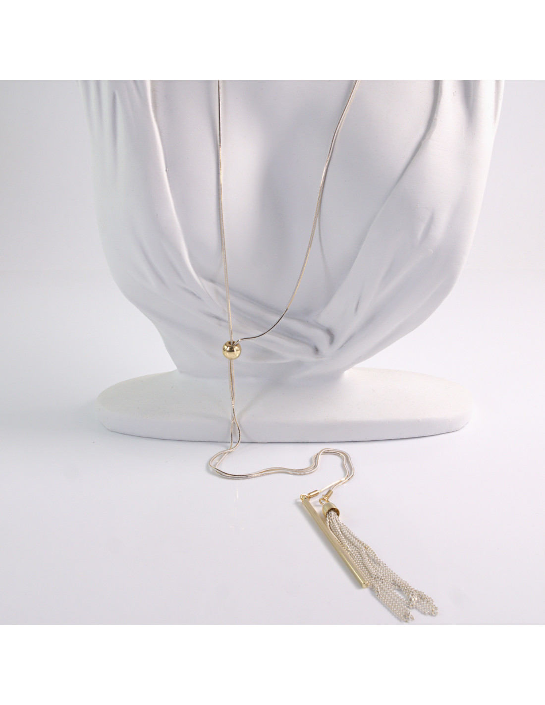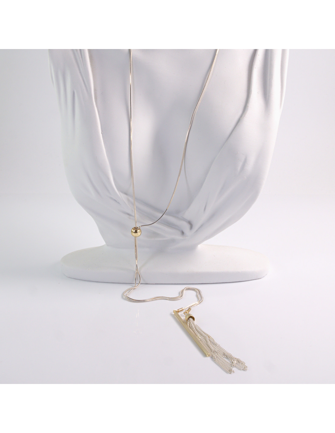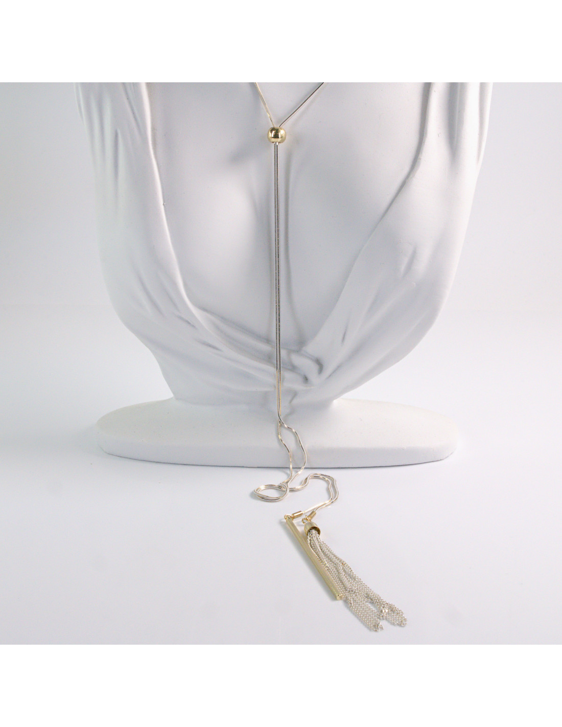 NASZYJNIK DŁUGI WISIOR CHWOST BIAŁO- ZŁOTY KRAWATKA Lolita Akcesoria