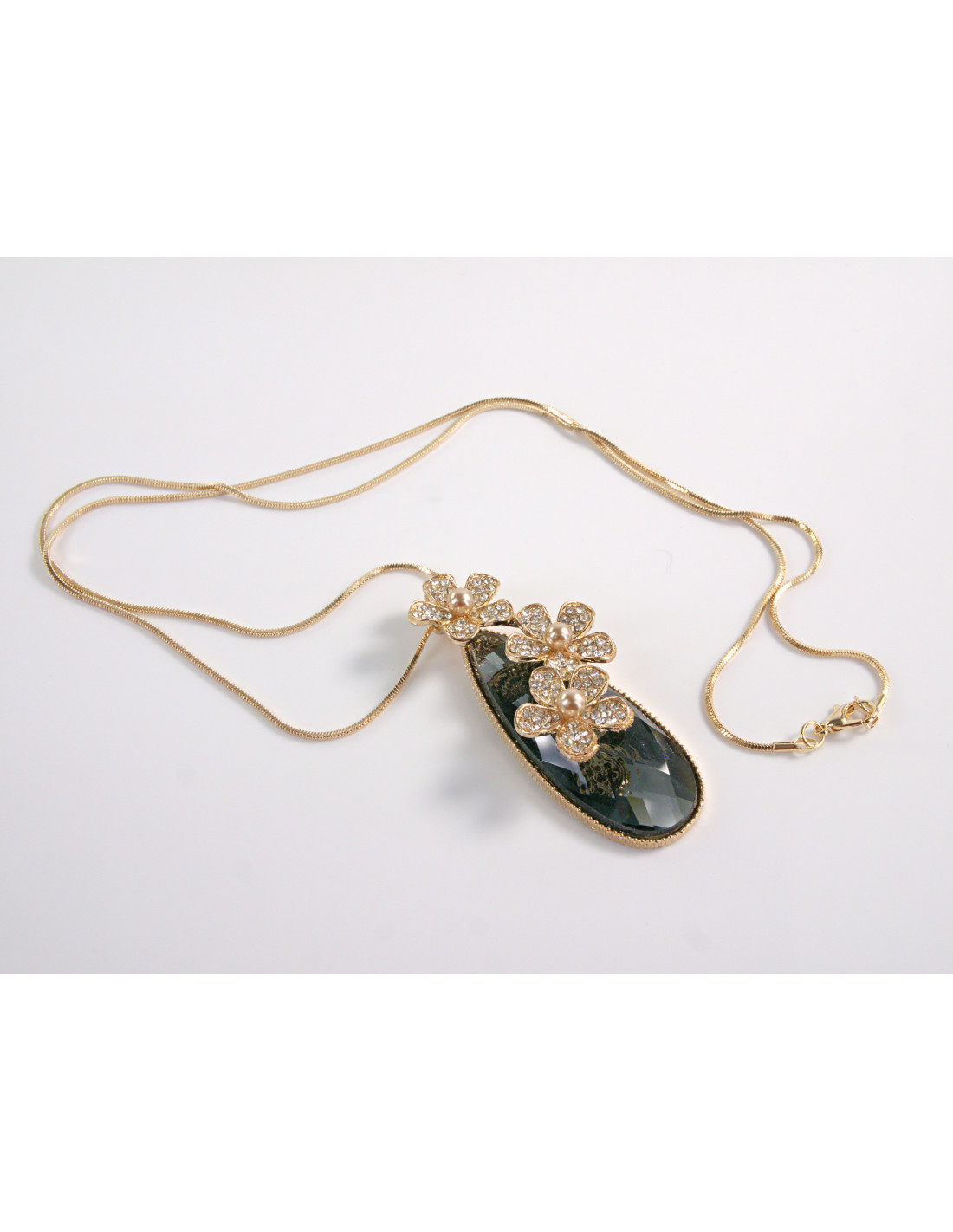 NASZYJNIK DŁUGI WISIOR MEDALION ZŁOTO - GRAFITOWY Lolita Akcesoria