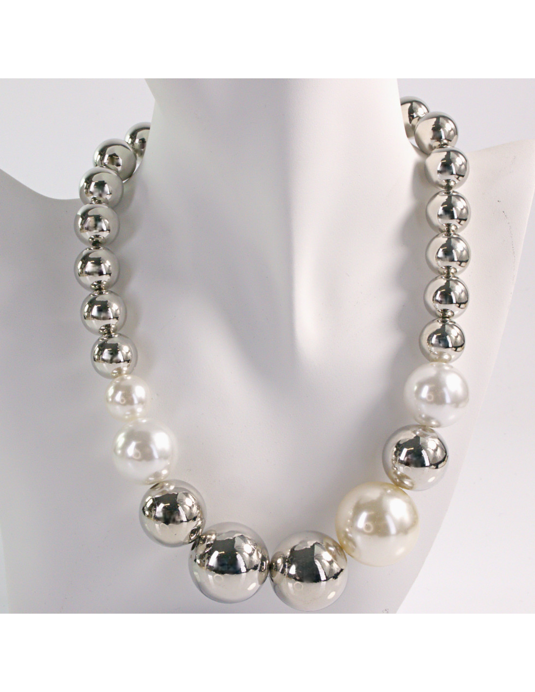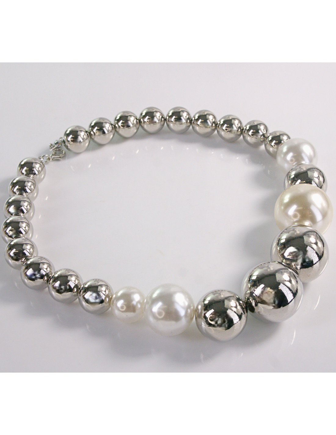 NASZYJNIK KOLIA SREBRNE WIECZOROWE KORALE POD SZYJĘ PERŁA LOLITA AKCESORIA