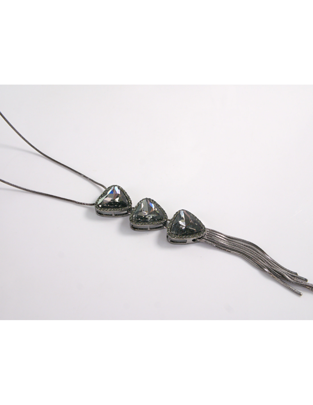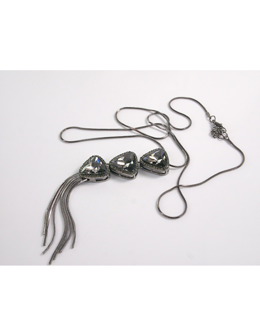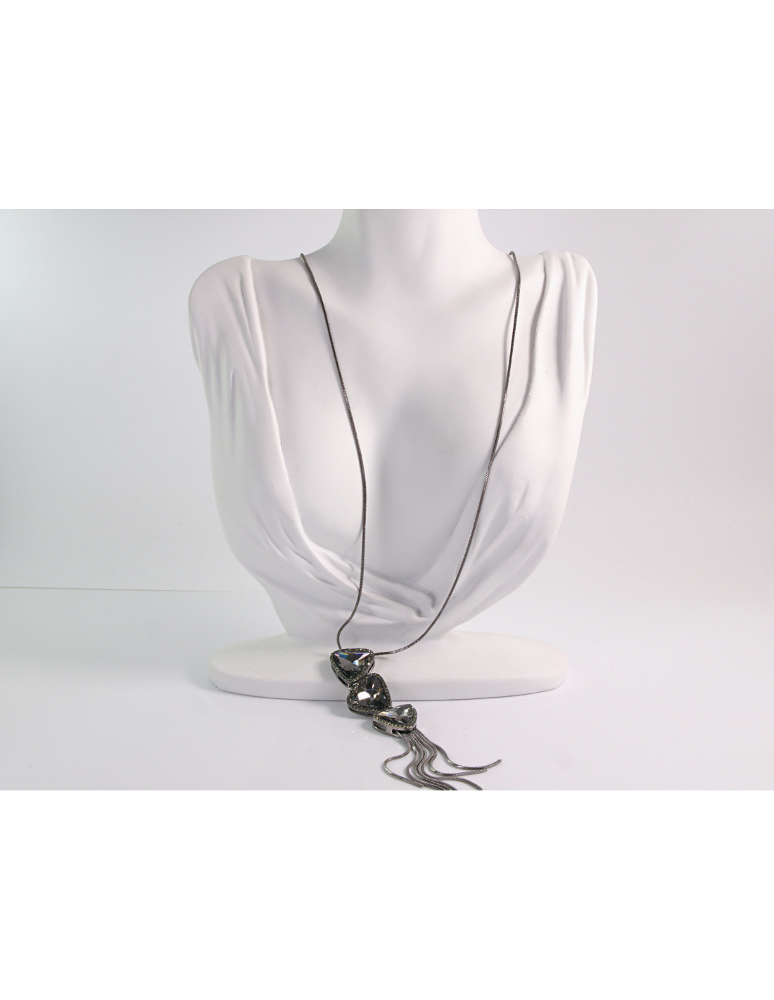 NASZYJNIK DŁUGI WISIOR KRAWATKA GRAFITOWY KWIAT Lolita Akcesoria