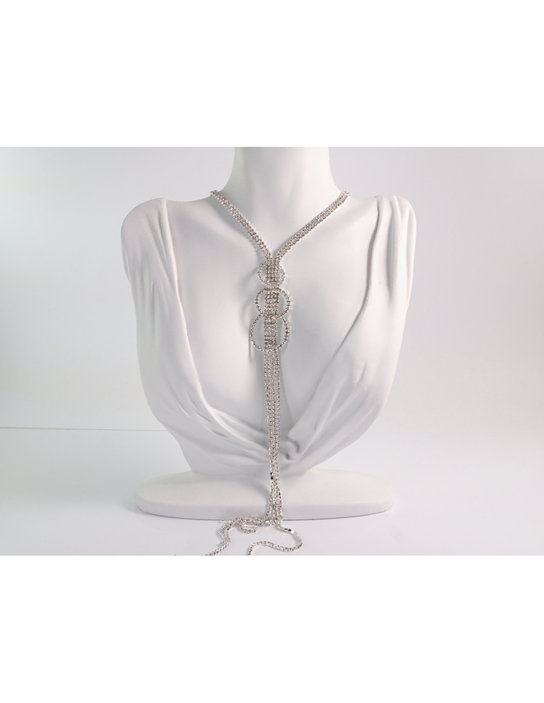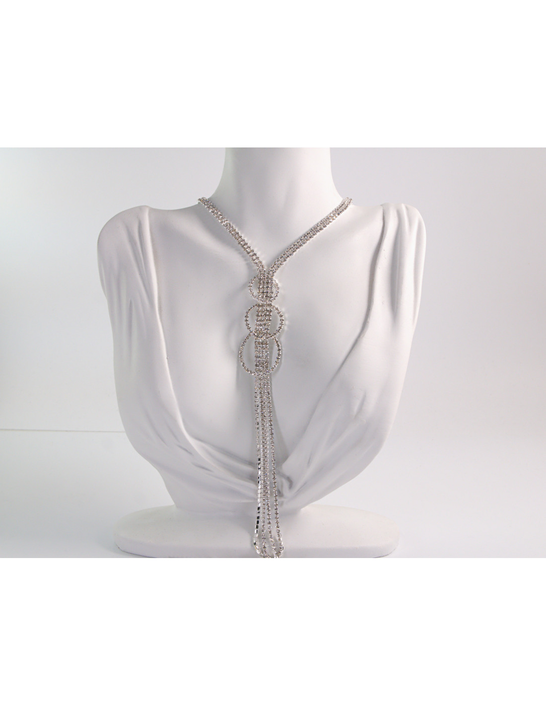 NASZYJNIK WIECZOROWY DŁUGI WISIOR KRAWATKA Z CYRKONIAMI Lolita Akcesoria
