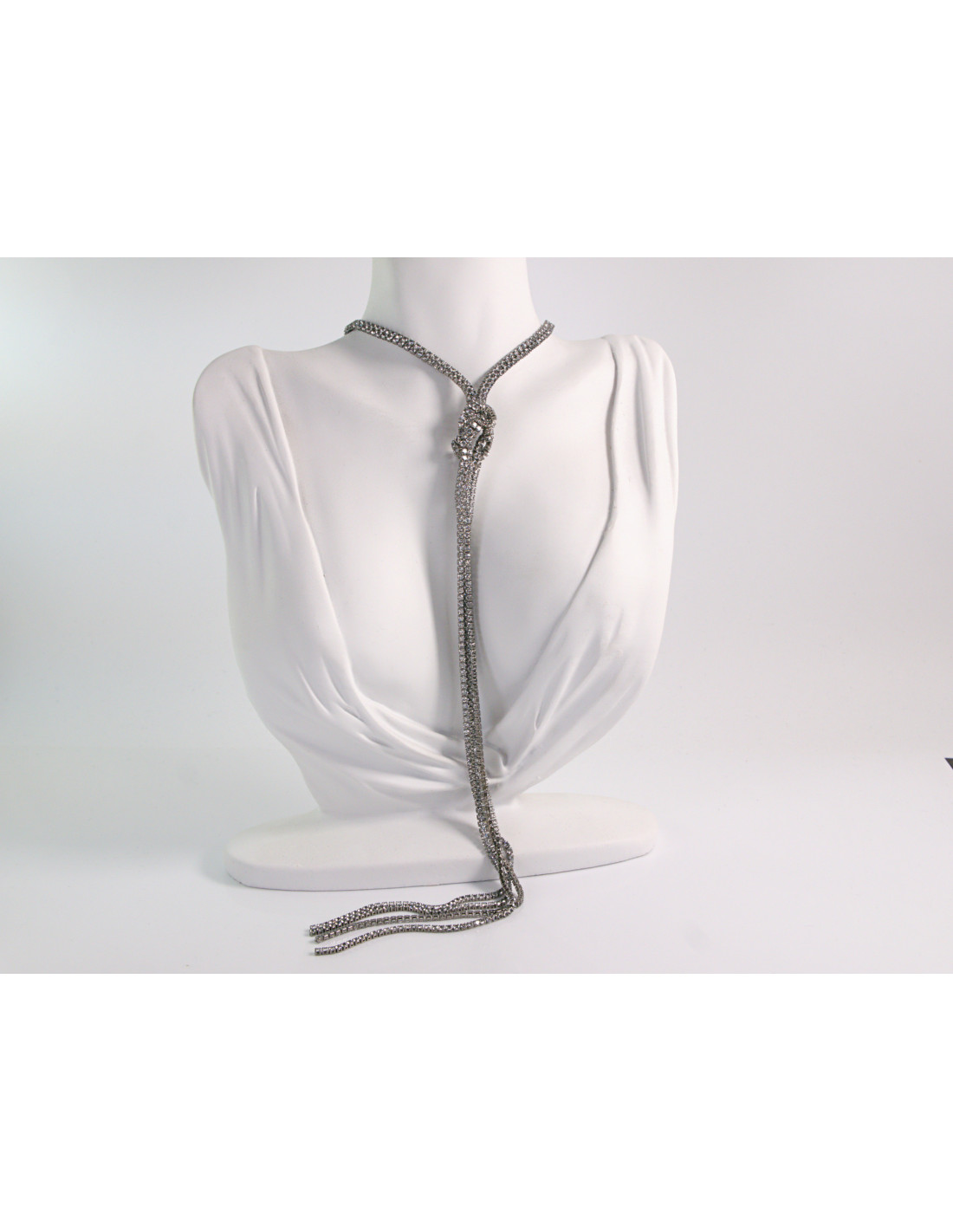 NASZYJNIK WIECZOROWY DŁUGI WĘZEŁ KRAWATKA Z CYRKONIAMI Lolita Akcesoria