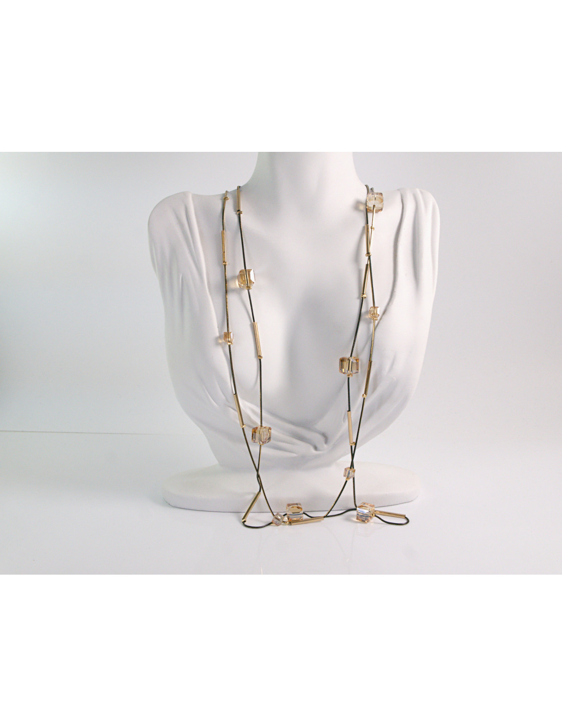 NASZYJNIK WIECZOROWY PODWÓJNY DŁUGI Z KORALIKAMI Lolita Akcesoria