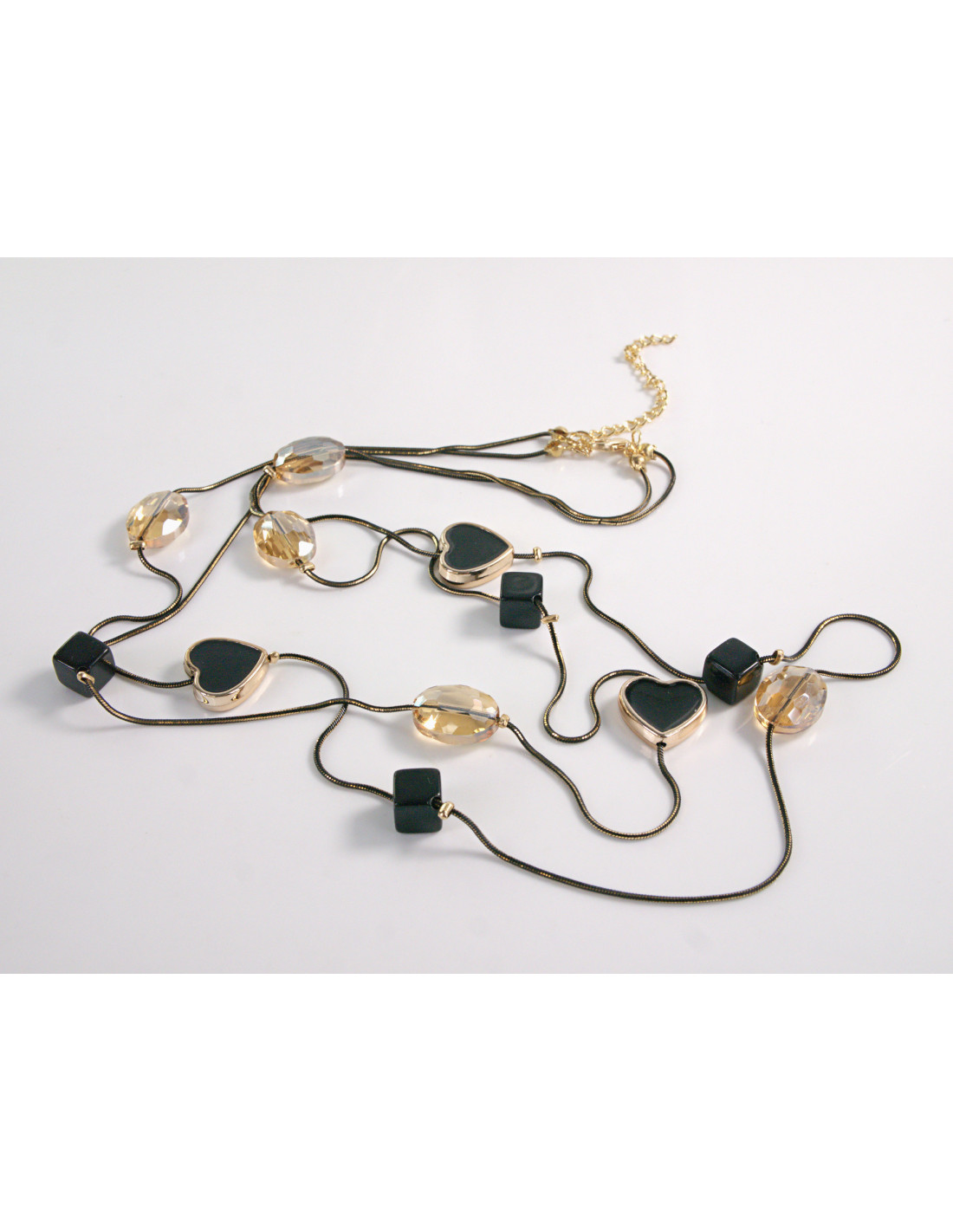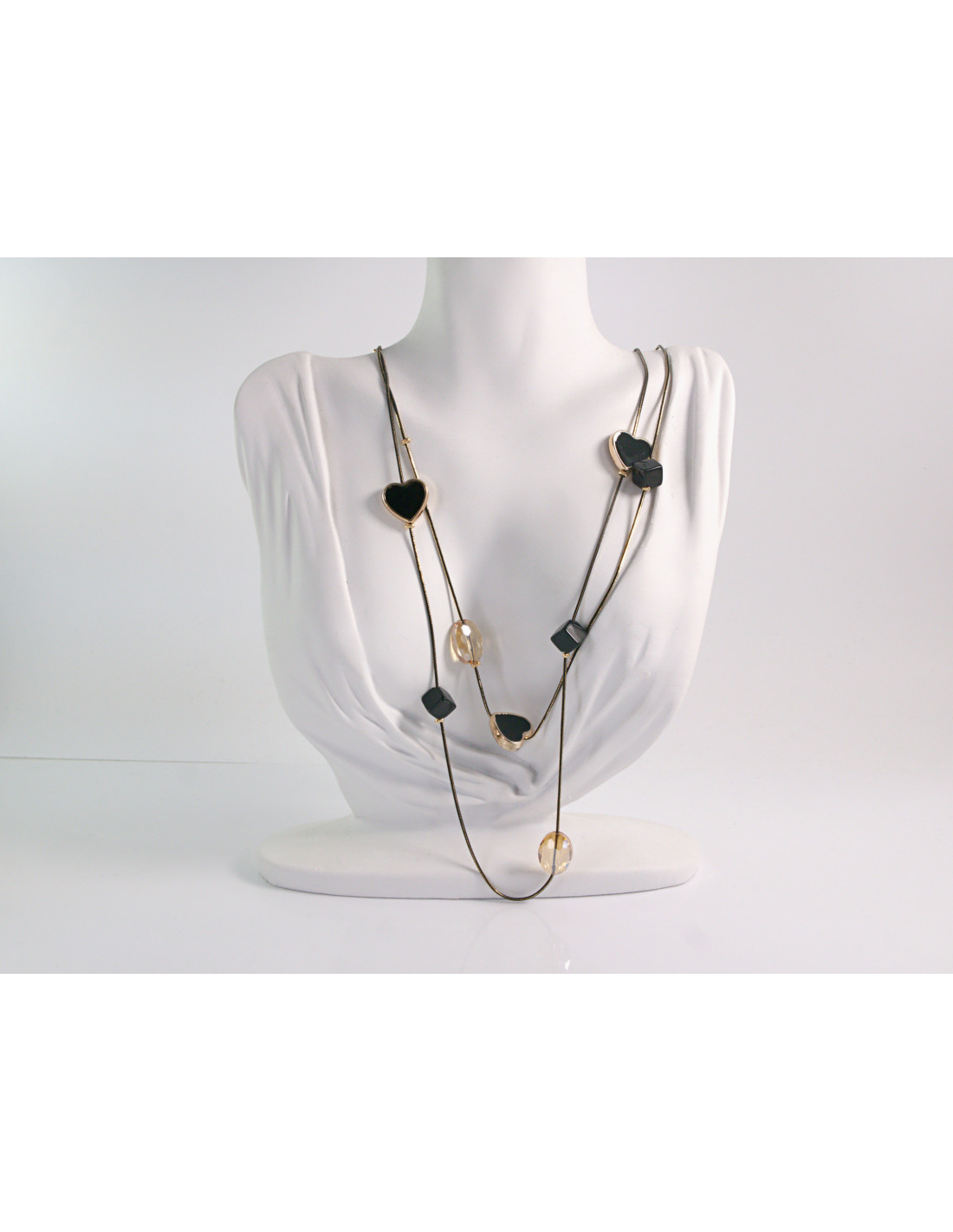 NASZYJNIK WIECZOROWY PODWÓJNY DŁUGI Z KORALIKAMI Lolita Akcesoria