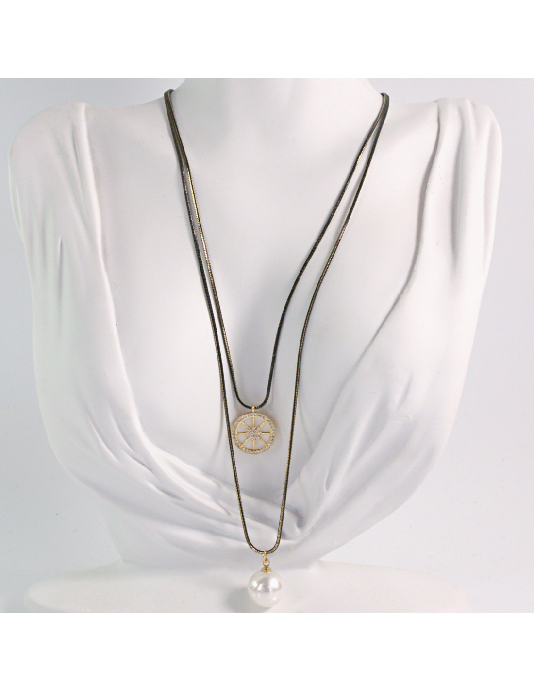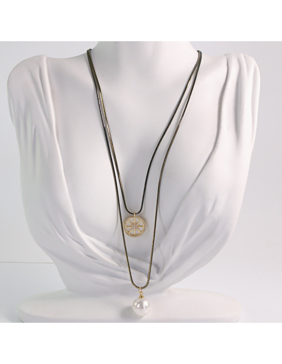 Naszyjnik PODWÓJNY WIECZOROWY z Perłą