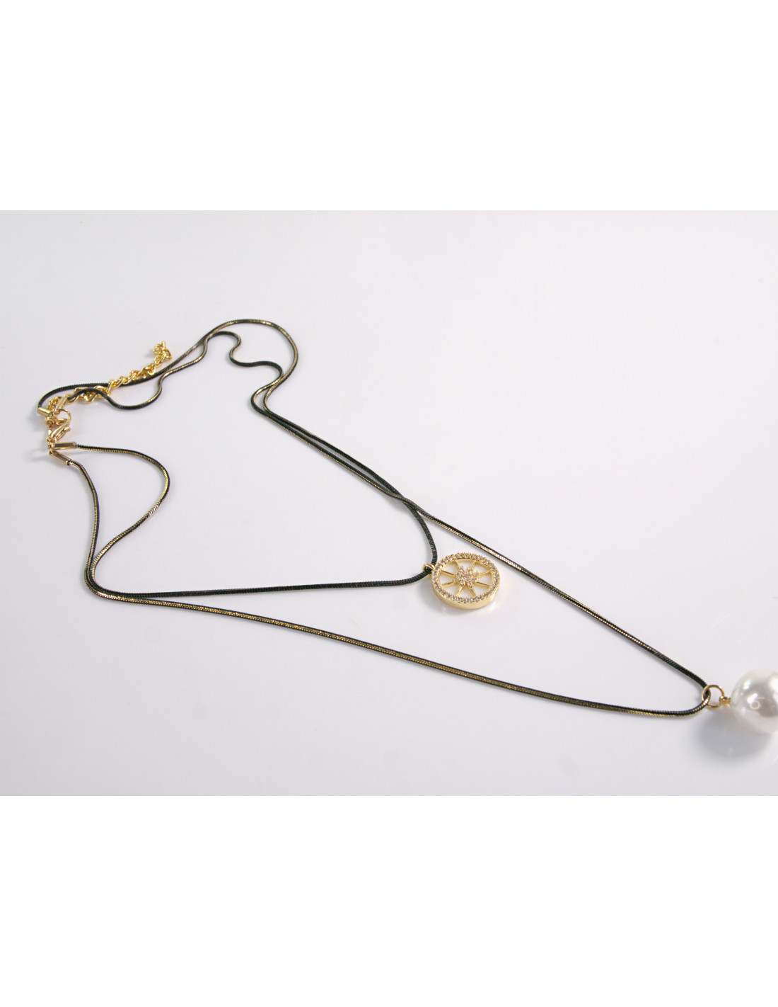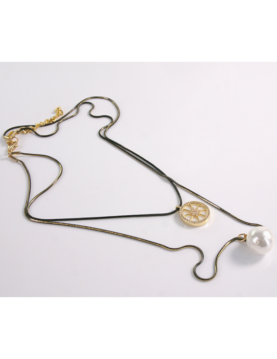 NASZYJNIK WIECZOROWY PODWÓJNY Z PERŁĄ Lolita Akcesoria