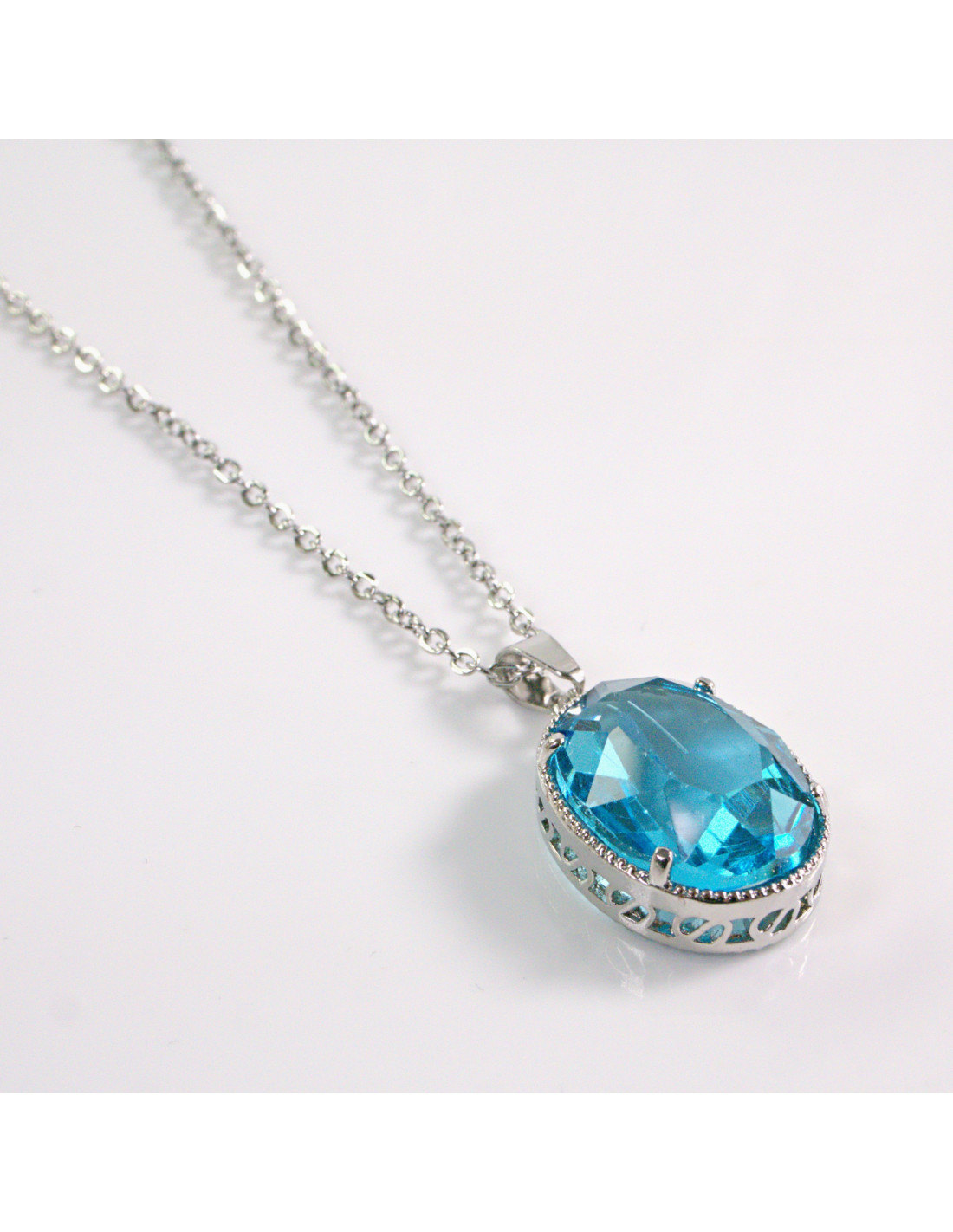 NASZYJNIK SREBRNY OWAL NIEBIESKI BŁEKIT STAL CHIRURGICZNA LOLITA AKCESORIA