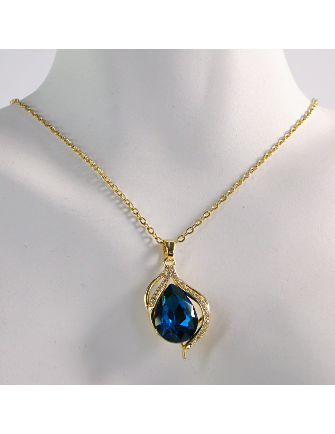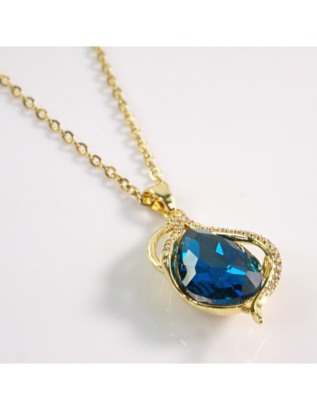 NASZYJNIK ZŁOTY ŁEZKA NIEBIESKI KROPLA STAL CHIRURGICZNA LOLITA AKCESORIA