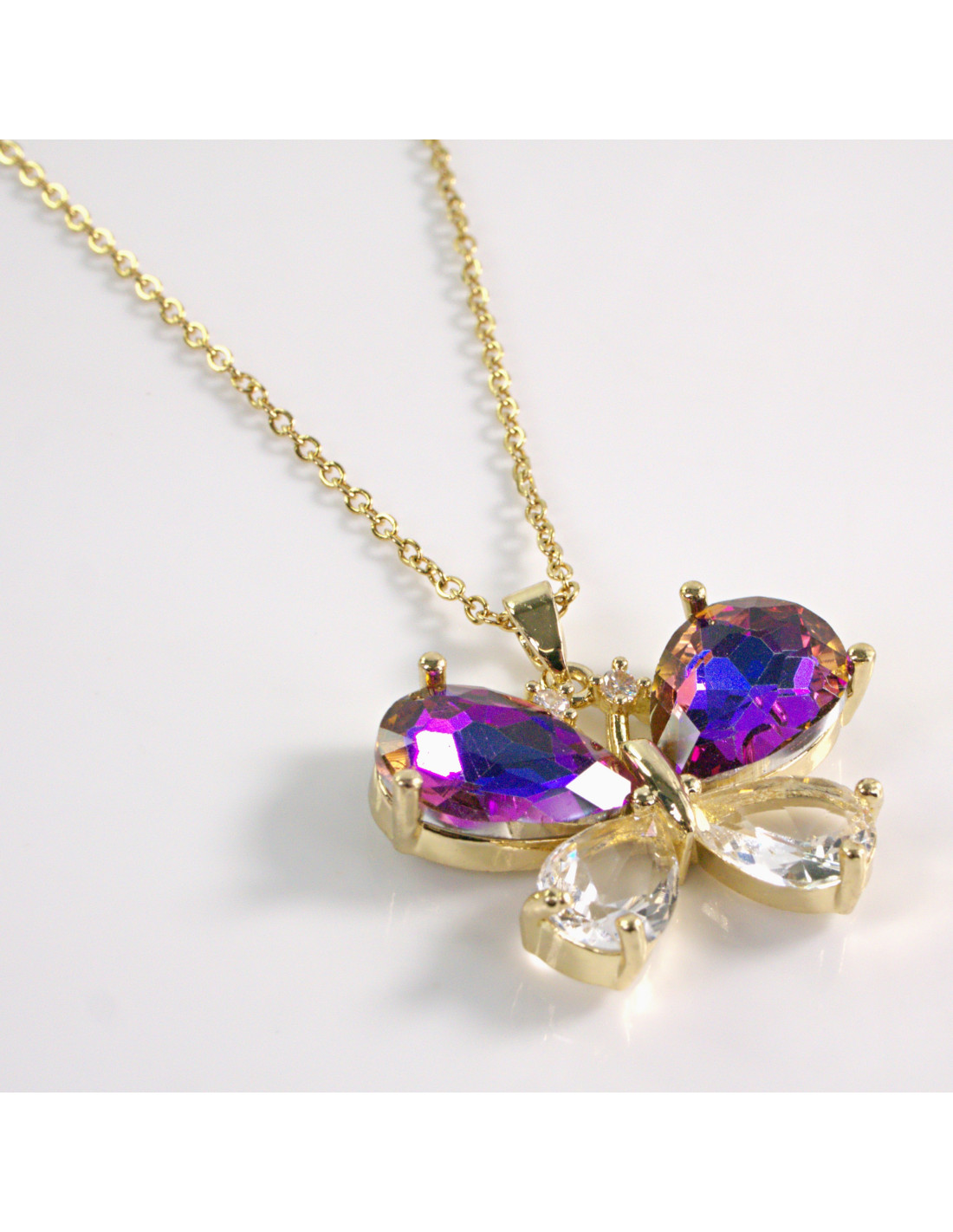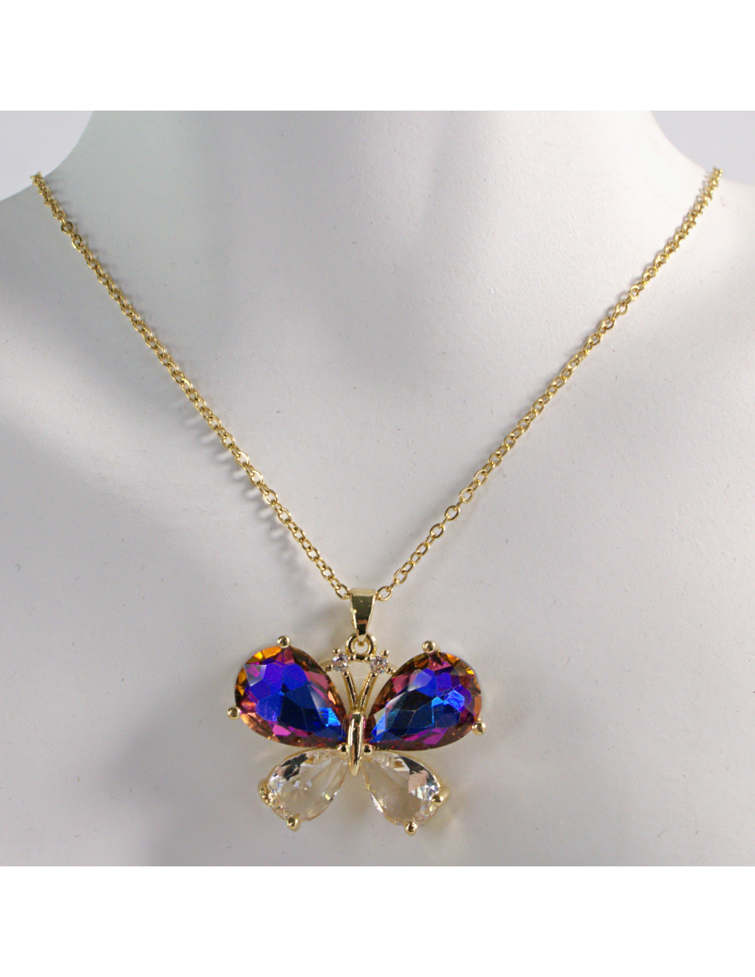 NASZYJNIK ZŁOTY MOTYL NIEBIESKI FIOLET STAL CHIRURGICZNA LOLITA AKCESORIA