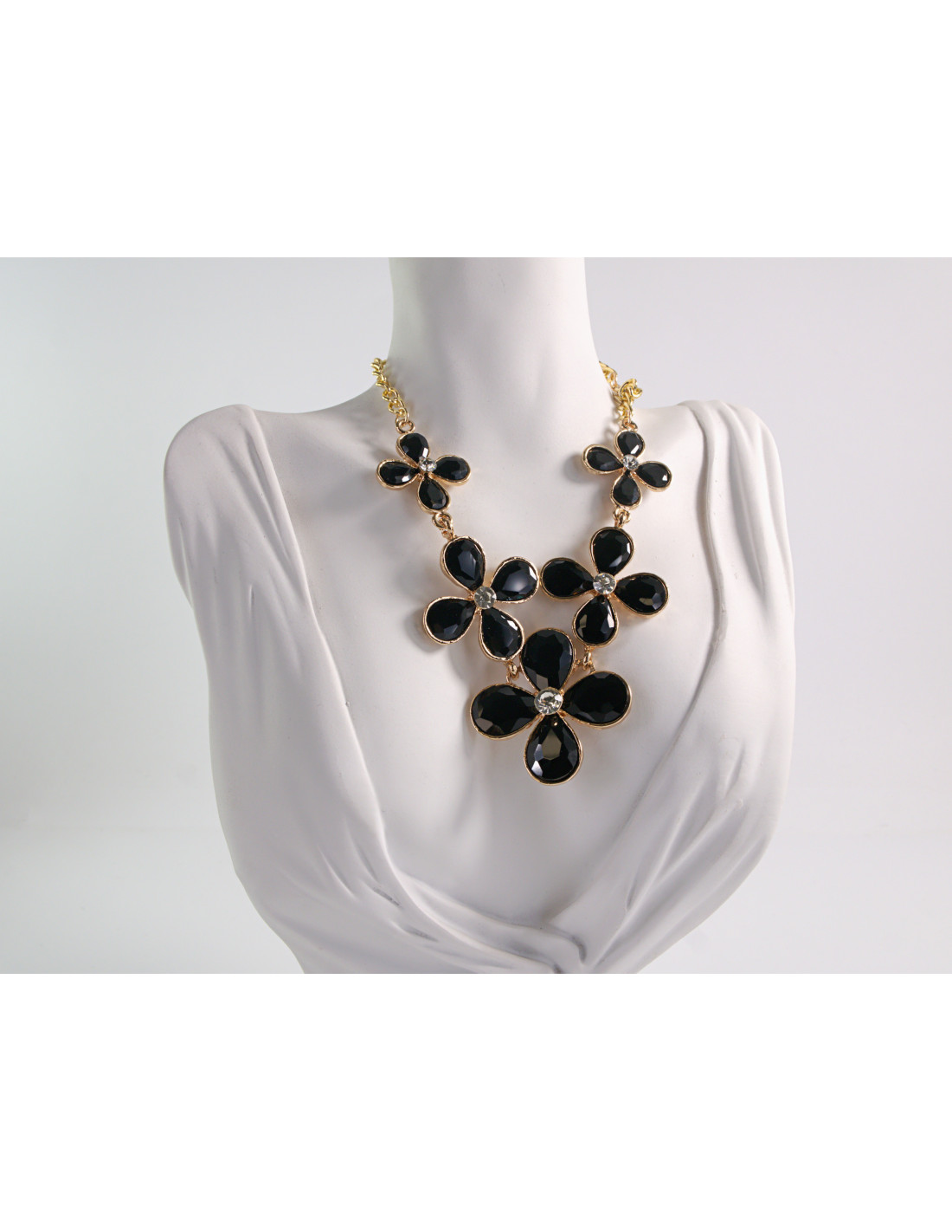 NASZYJNIK wieczorowy KOLIA POD SZYJĘ KWIATY LOLITA AKCESORIA CZARNY