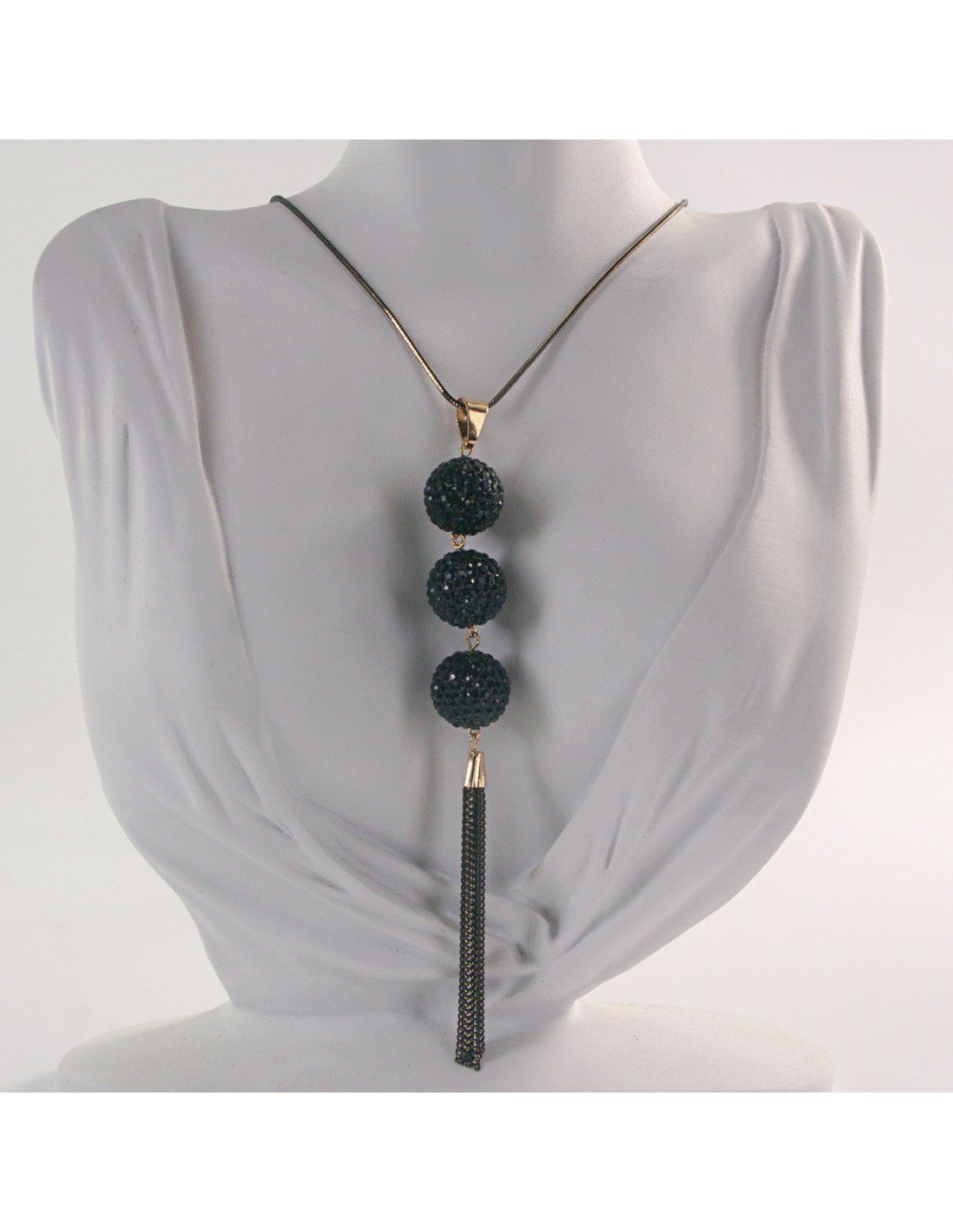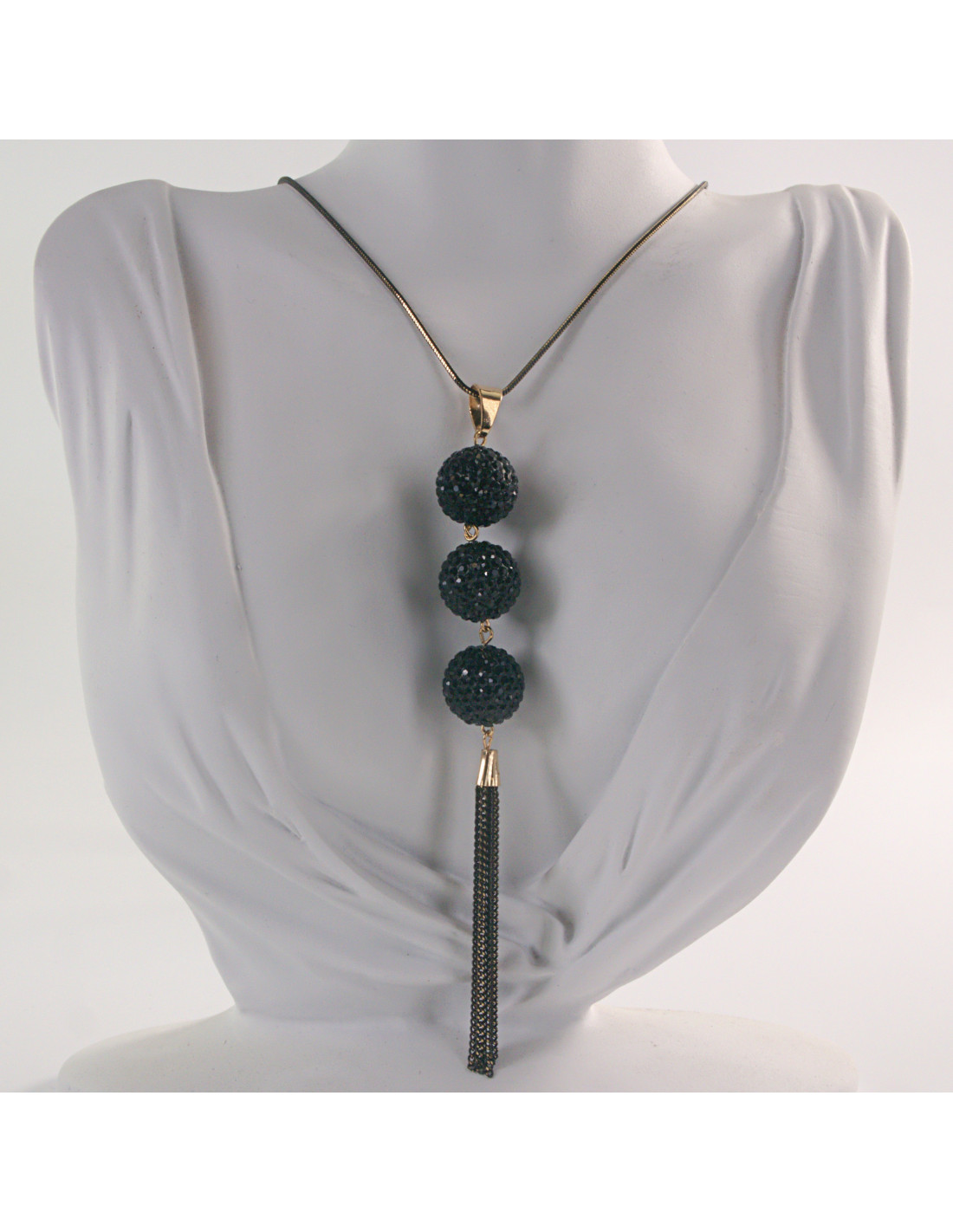 NASZYJNIK DŁUGI WISIOR MEDALION Lolita Akcesoria CZARNE KULE
