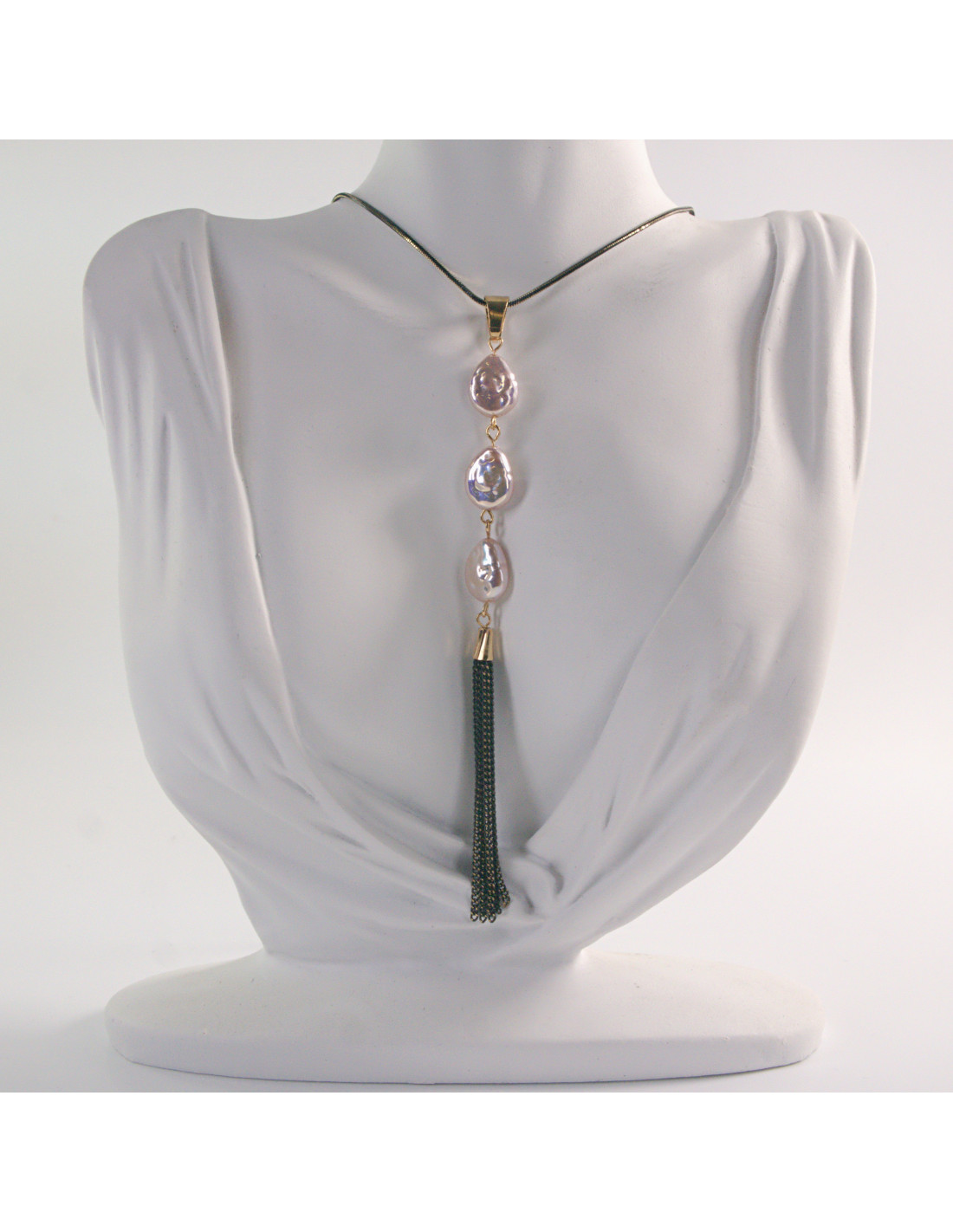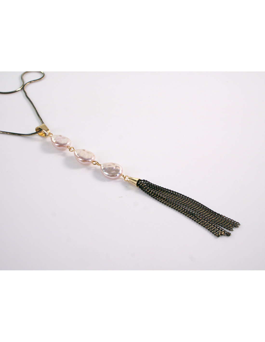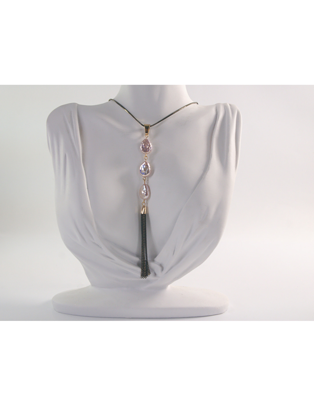 NASZYJNIK DŁUGI WISIOR MEDALION Lolita Akcesoria PERŁOWE ŁEZKI