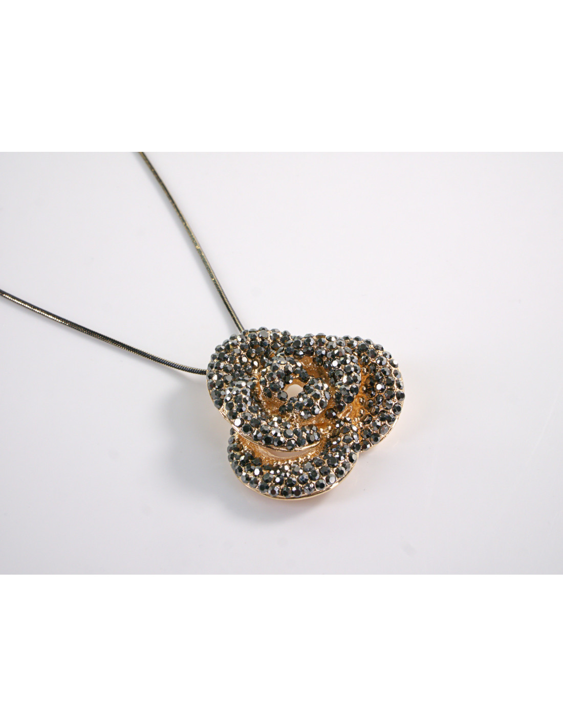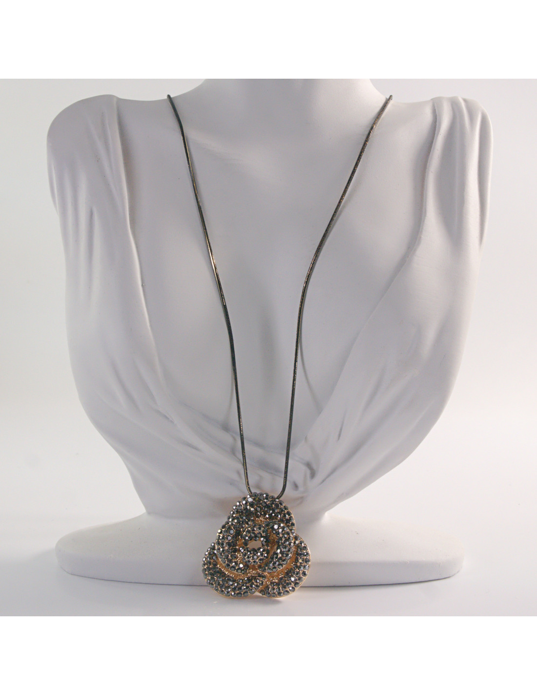 NASZYJNIK DŁUGI WISIOR MEDALION Lolita Akcesoria GRAFITOWY KWIAT RÓŻA