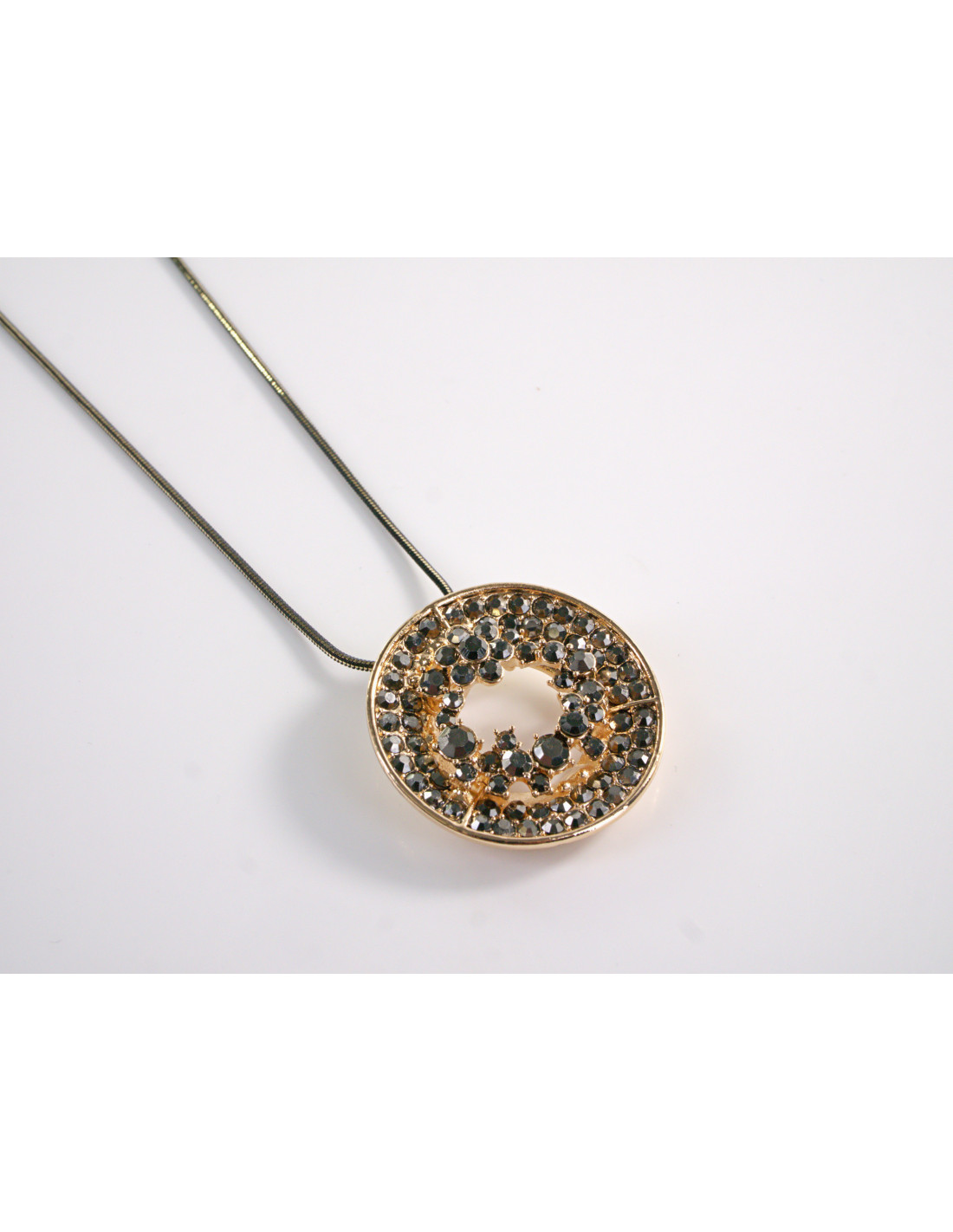 NASZYJNIK DŁUGI WISIOR MEDALION Lolita Akcesoria GRAFITOWO- ZŁOTY MEDALION