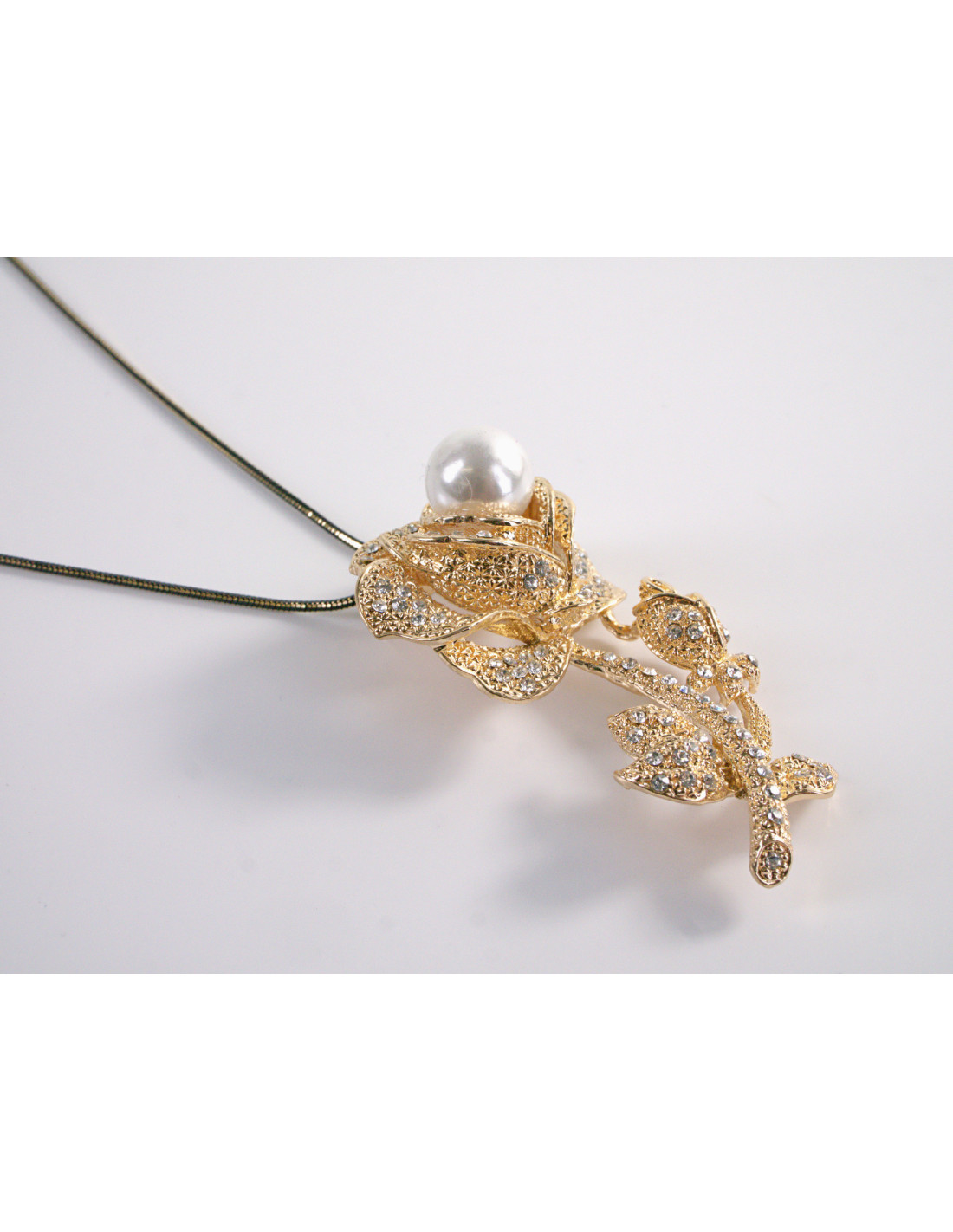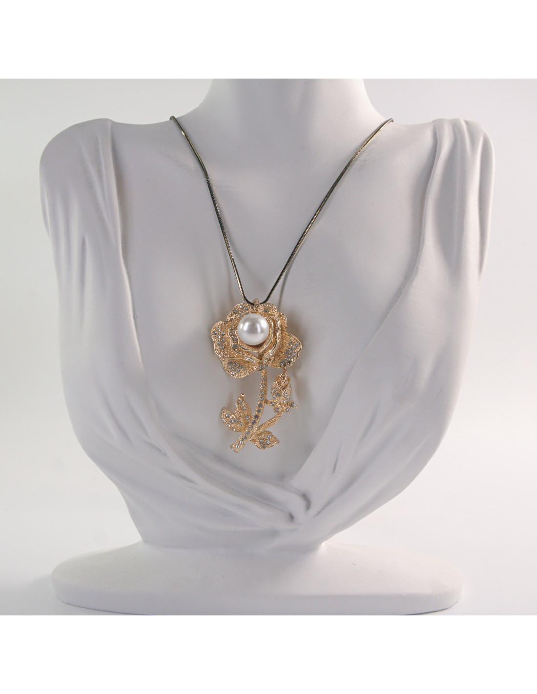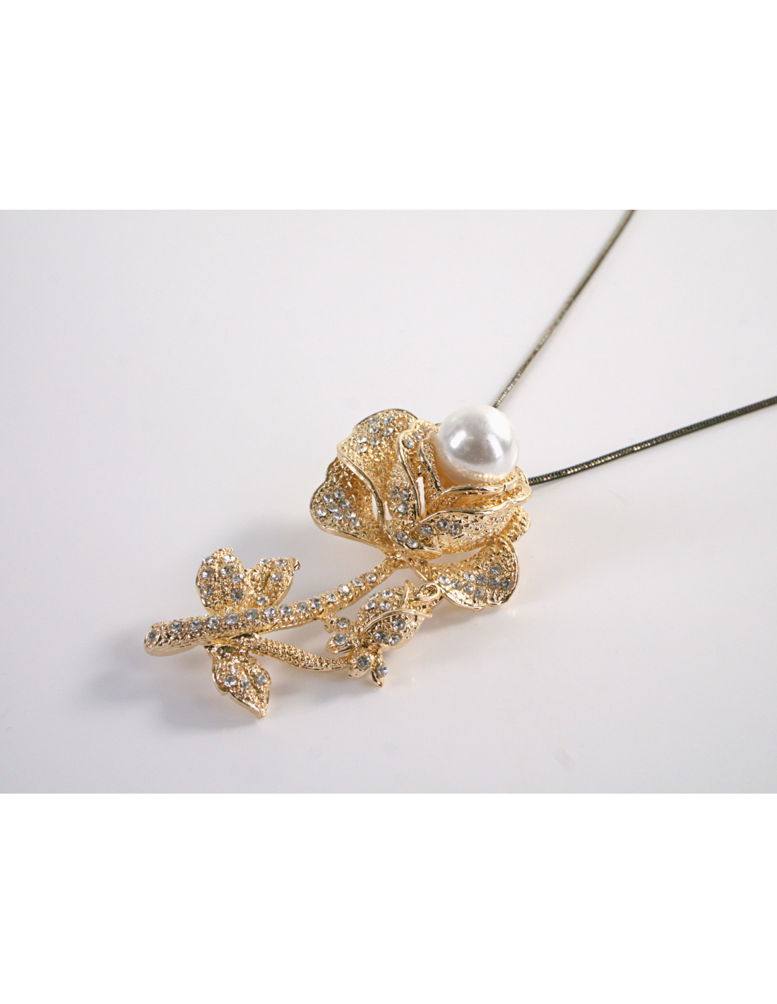 NASZYJNIK DŁUGI WISIOR MEDALION Lolita Akcesoria ZŁOTY KWIAT Z PERŁĄ
