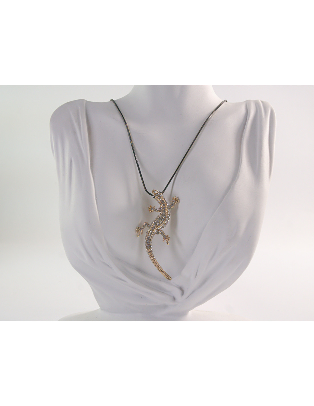 NASZYJNIK DŁUGI WISIOR MEDALION Lolita Akcesoria ZŁOTA JASZCZURKA