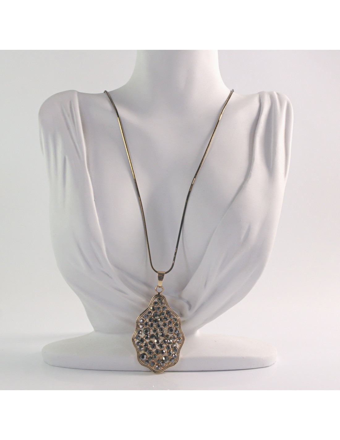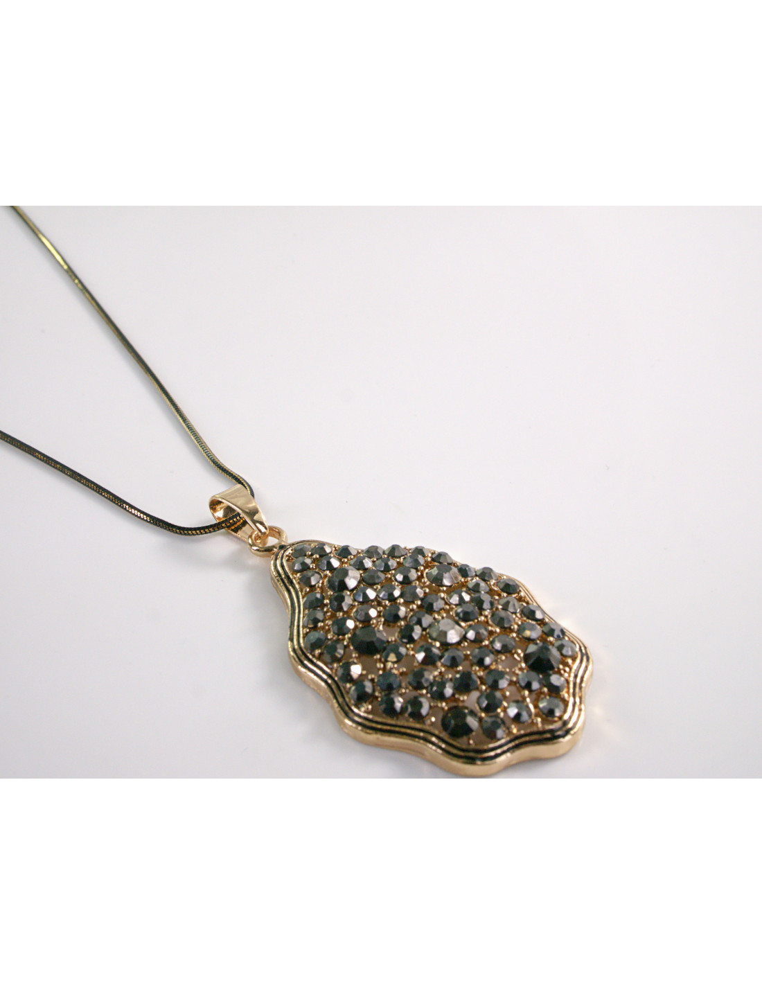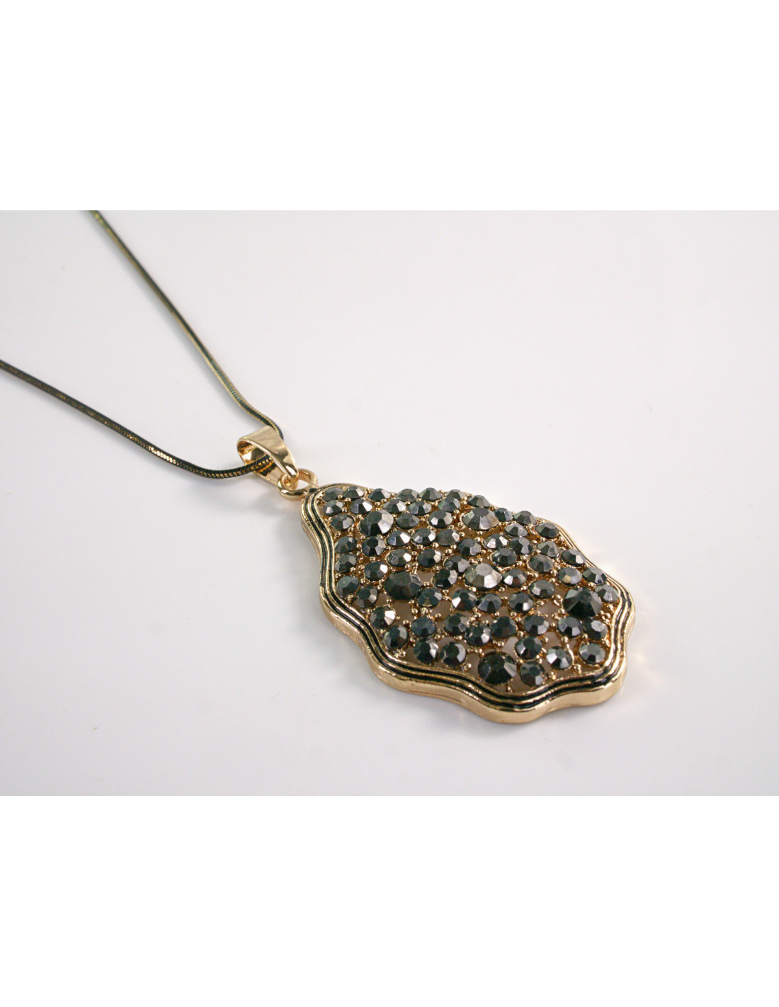 NASZYJNIK DŁUGI WISIOR MEDALION Lolita Akcesoria GRAFITOWY LIŚĆ