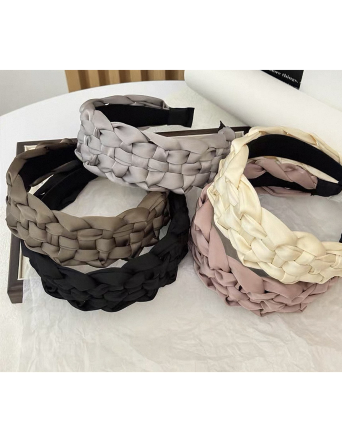 OPASKA do Włosów PLECIONA SZEROKA SATYNA Lolita Akcesoria BORDOWY