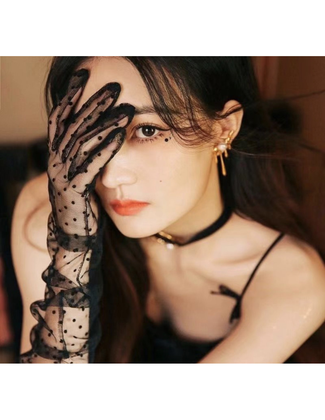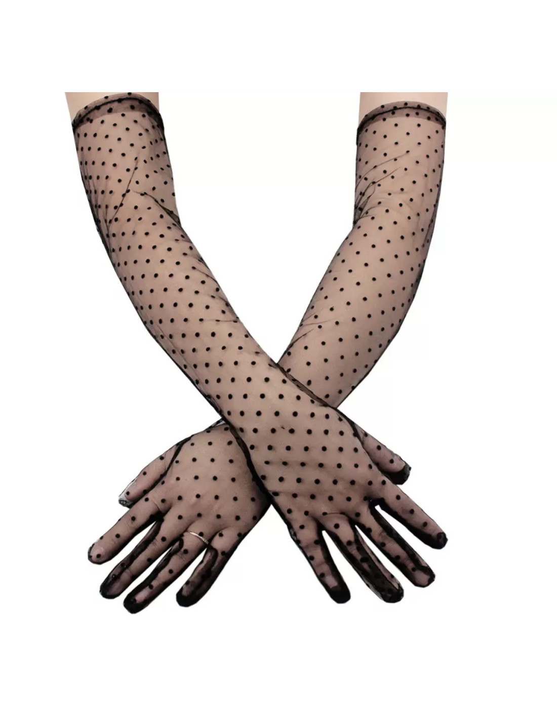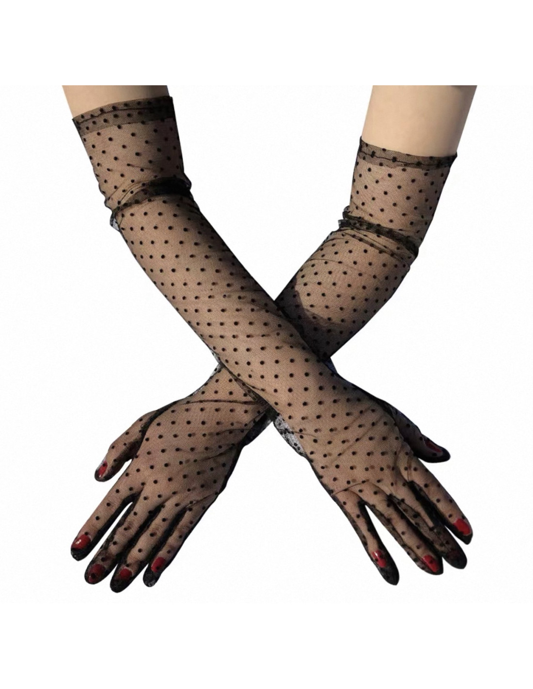 RĘKAWICZKI DŁUGIE W KROPECZKI WIECZOROWE LOLITA AKCESORIA