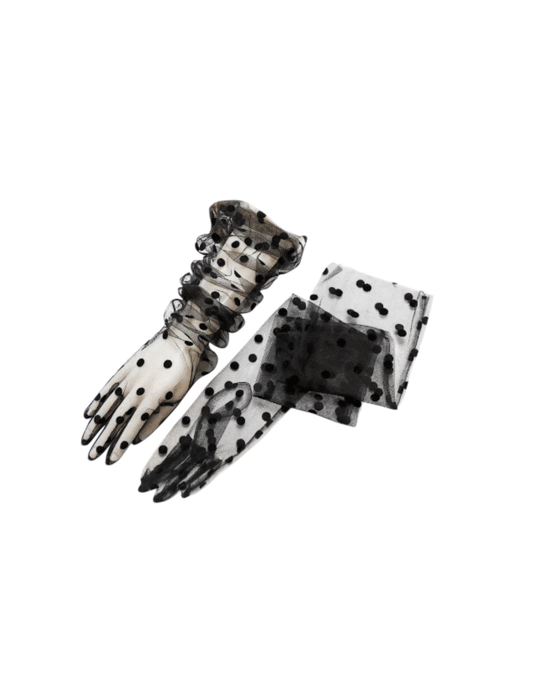 RĘKAWICZKI DŁUGIE W KROPKI WIECZOROWE LOLITA AKCESORIA