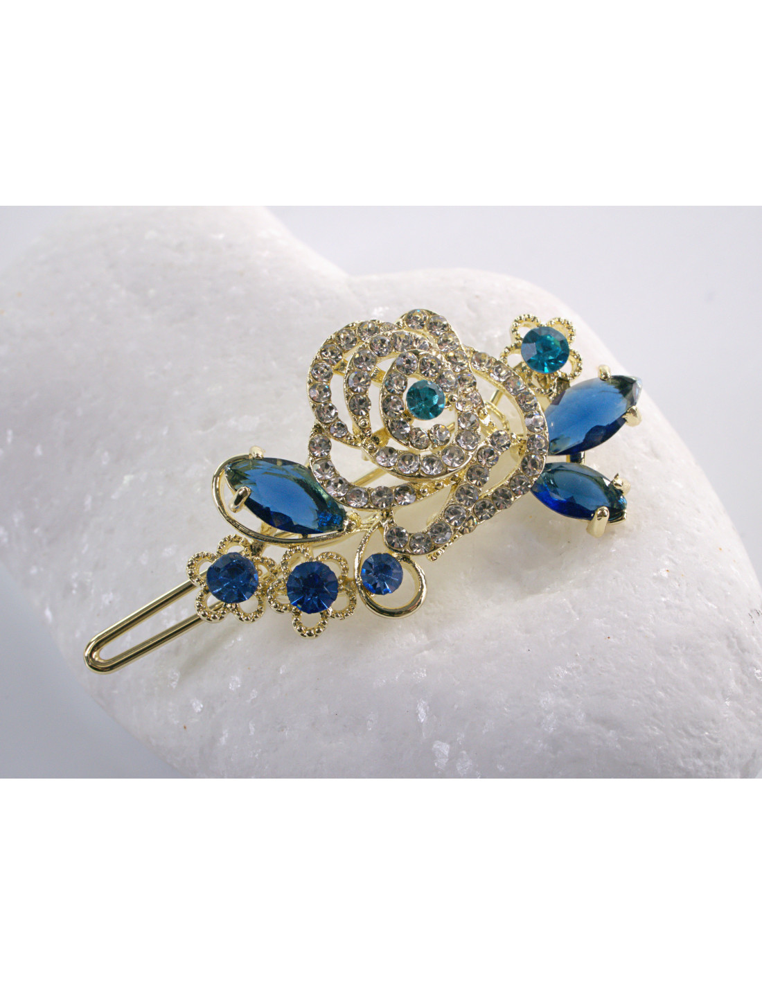 SPINKA do włosów RÓŻA KWIAT Z KRYSZTAŁKAMI Lolita Akcesoria NIEBIESKI