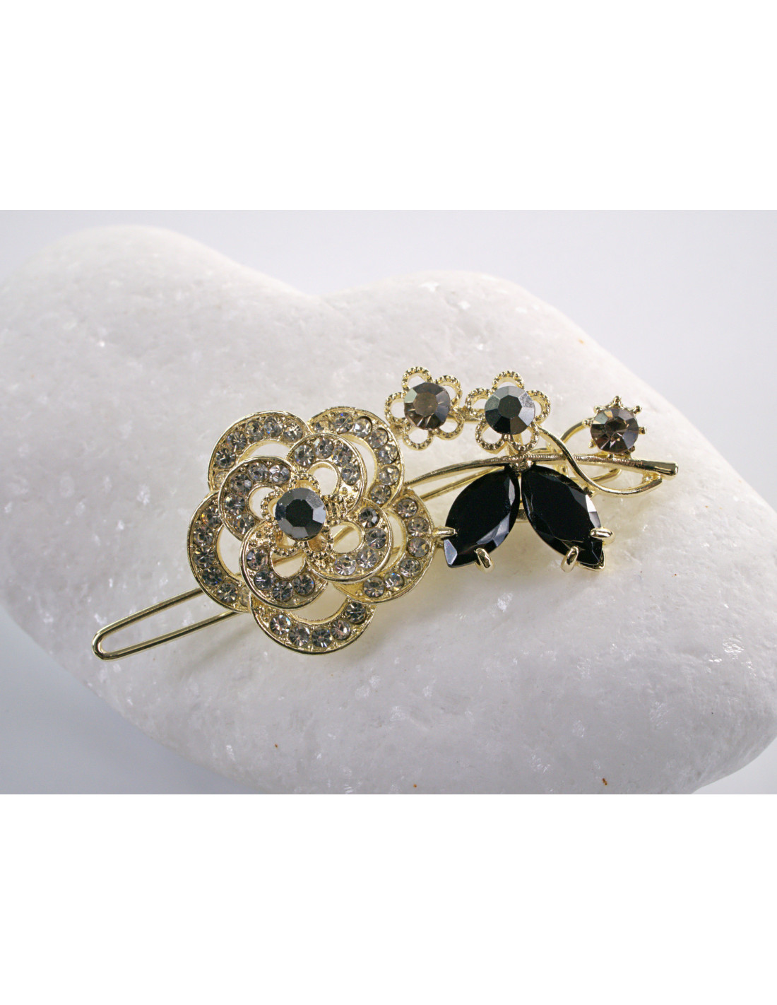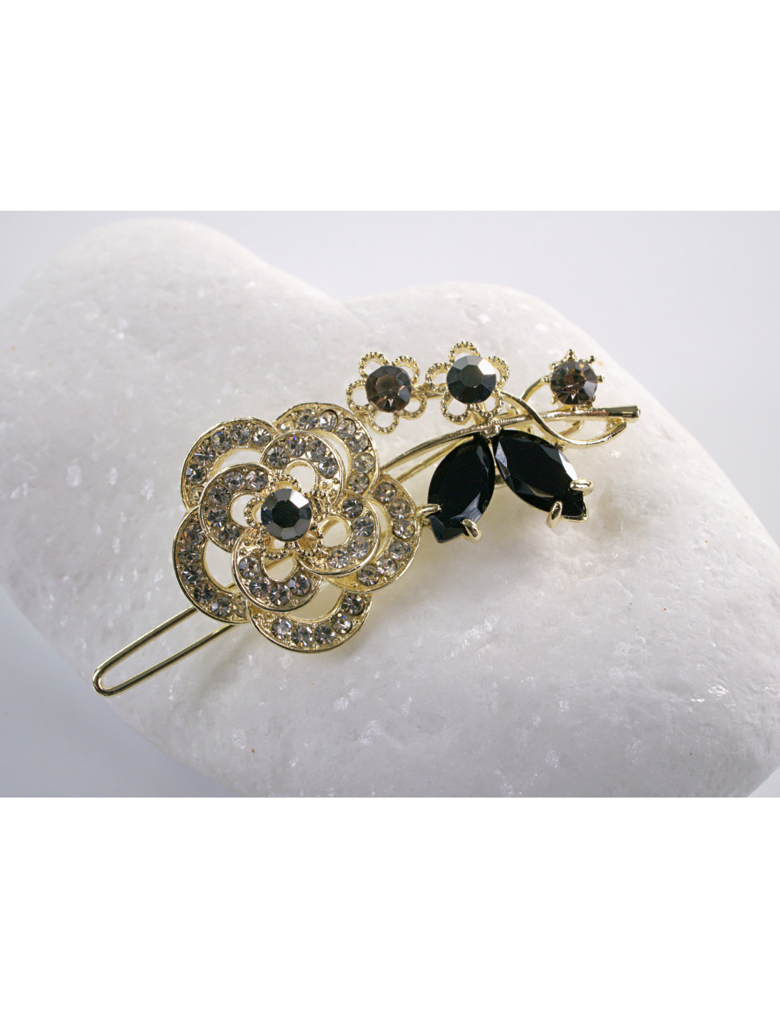 SPINKA do włosów RÓŻA KWIAT Z KRYSZTAŁKAMI Lolita Akcesoria CZARNY