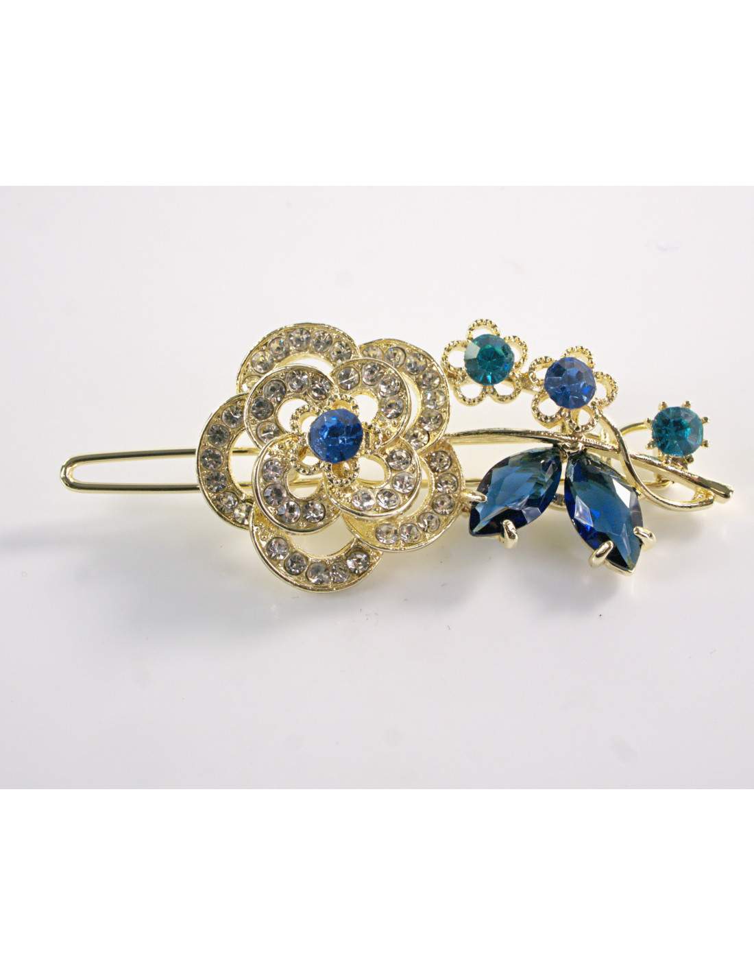 SPINKA do włosów RÓŻA KWIAT Z KRYSZTAŁKAMI Lolita Akcesoria NIEBIESKI