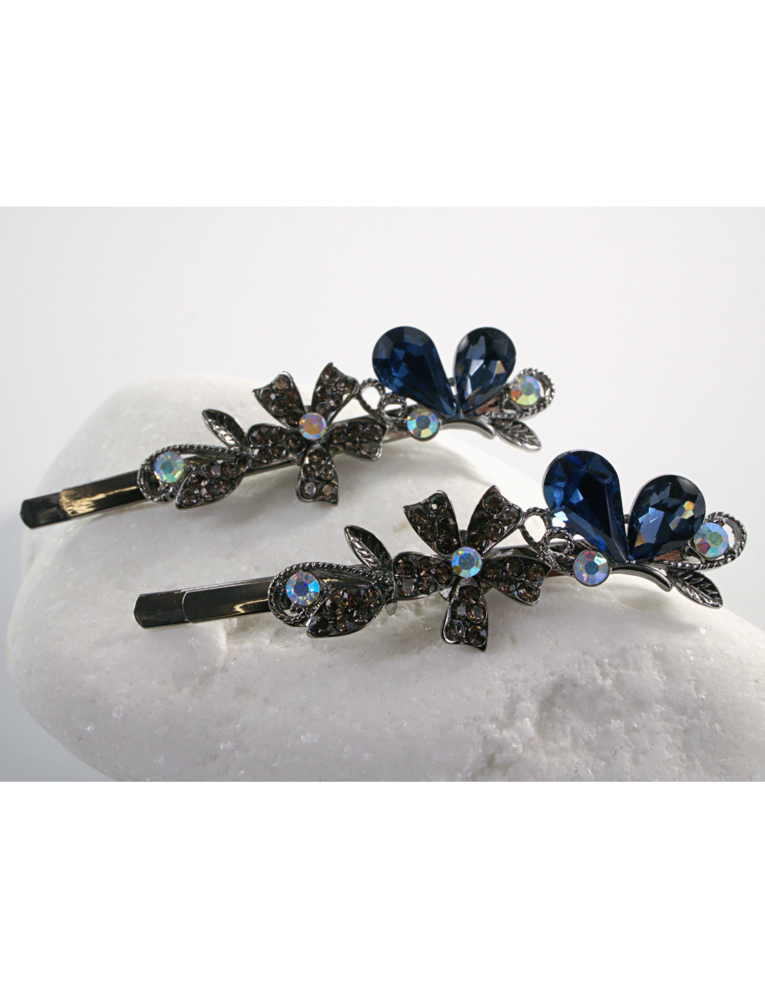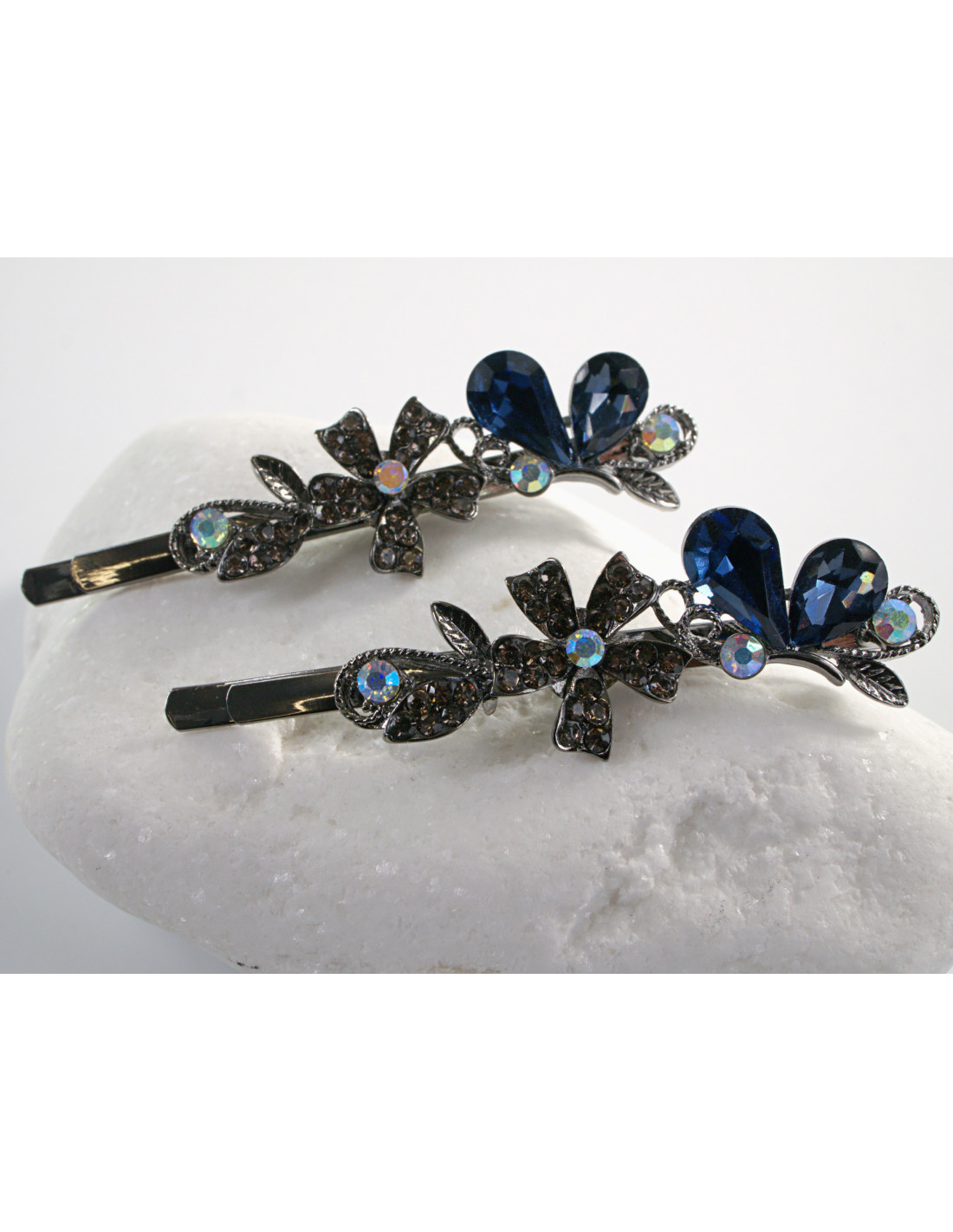Wsuwka do włosów MOTYLEK z kryształkami 2 szt. Lolita Akcesoria GRANATOWY