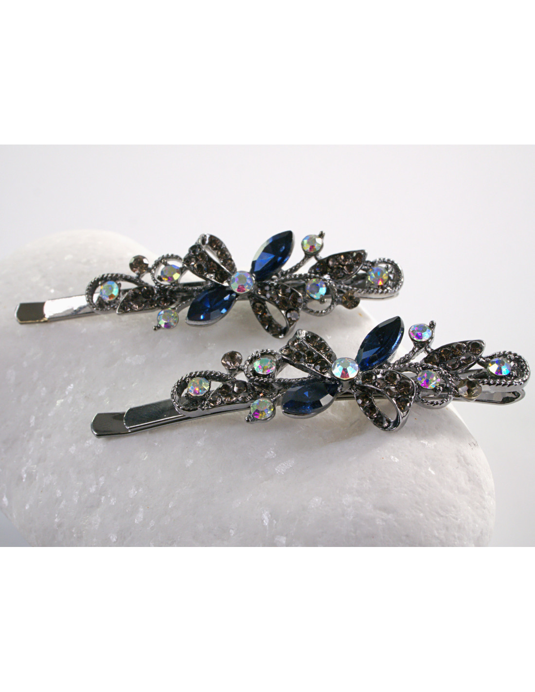 Wsuwka do włosów MOTYLEK z kryształkami 2 szt. Lolita Akcesoria GRANATOWY