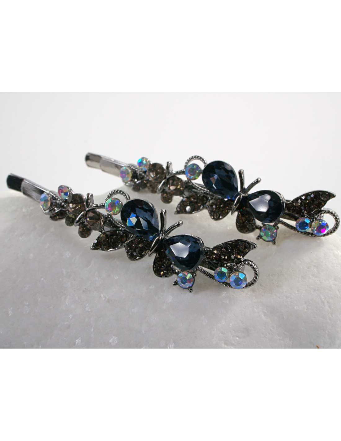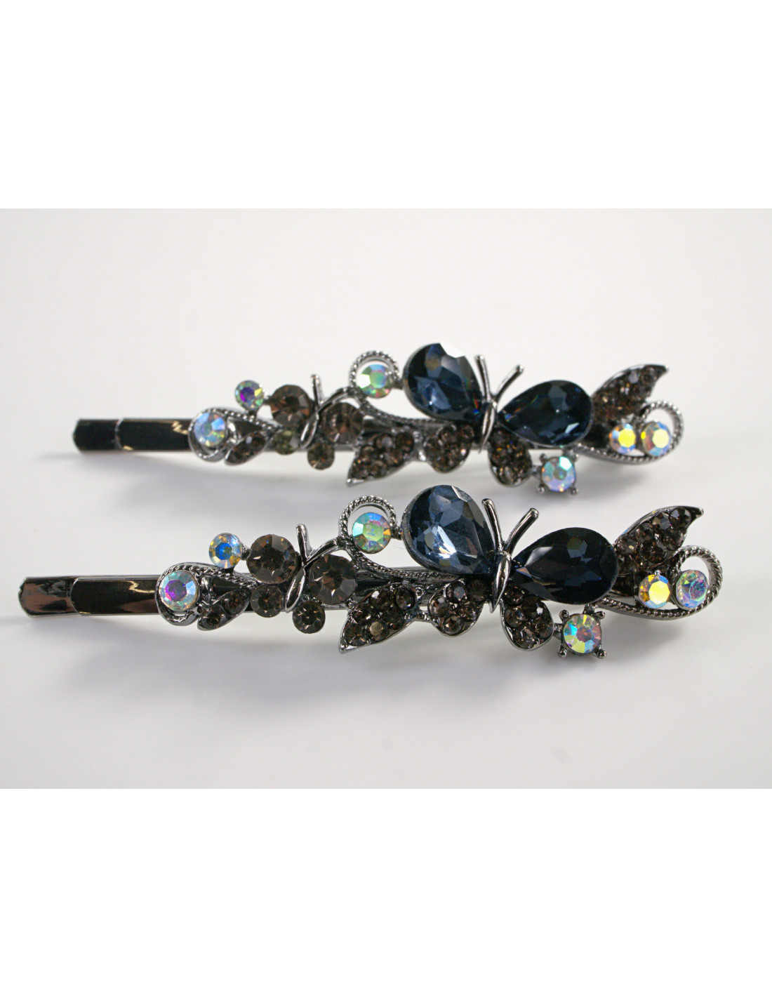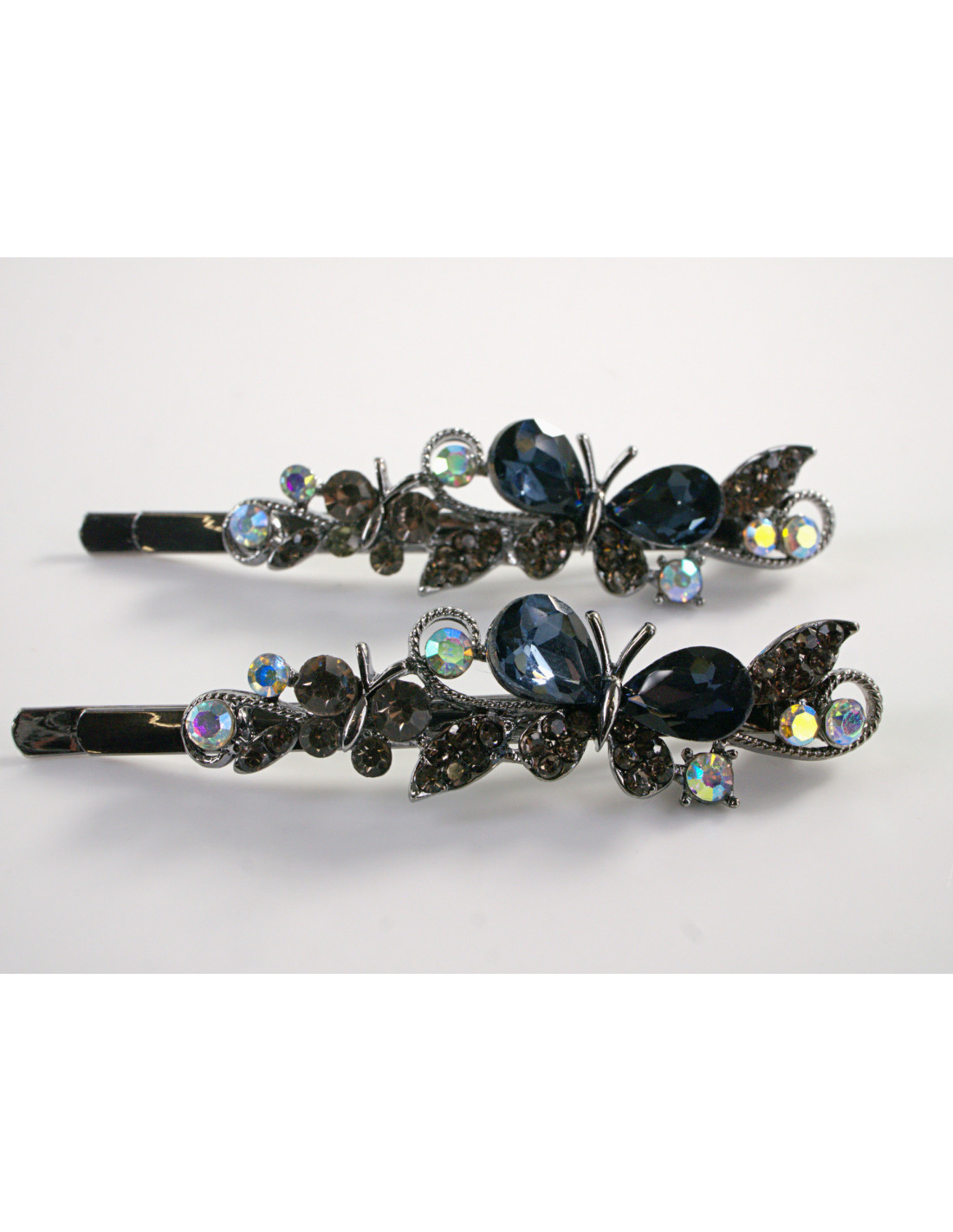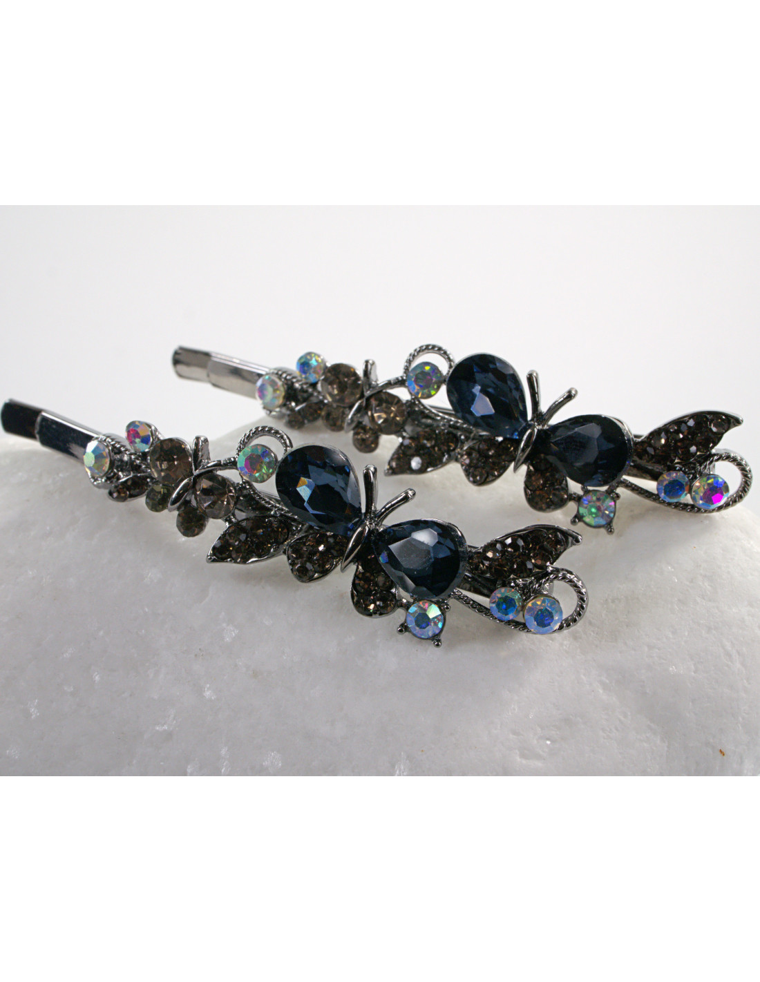 Wsuwka do włosów MOTYLEK z kryształkami 2 szt. Lolita Akcesoria GRANATOWY