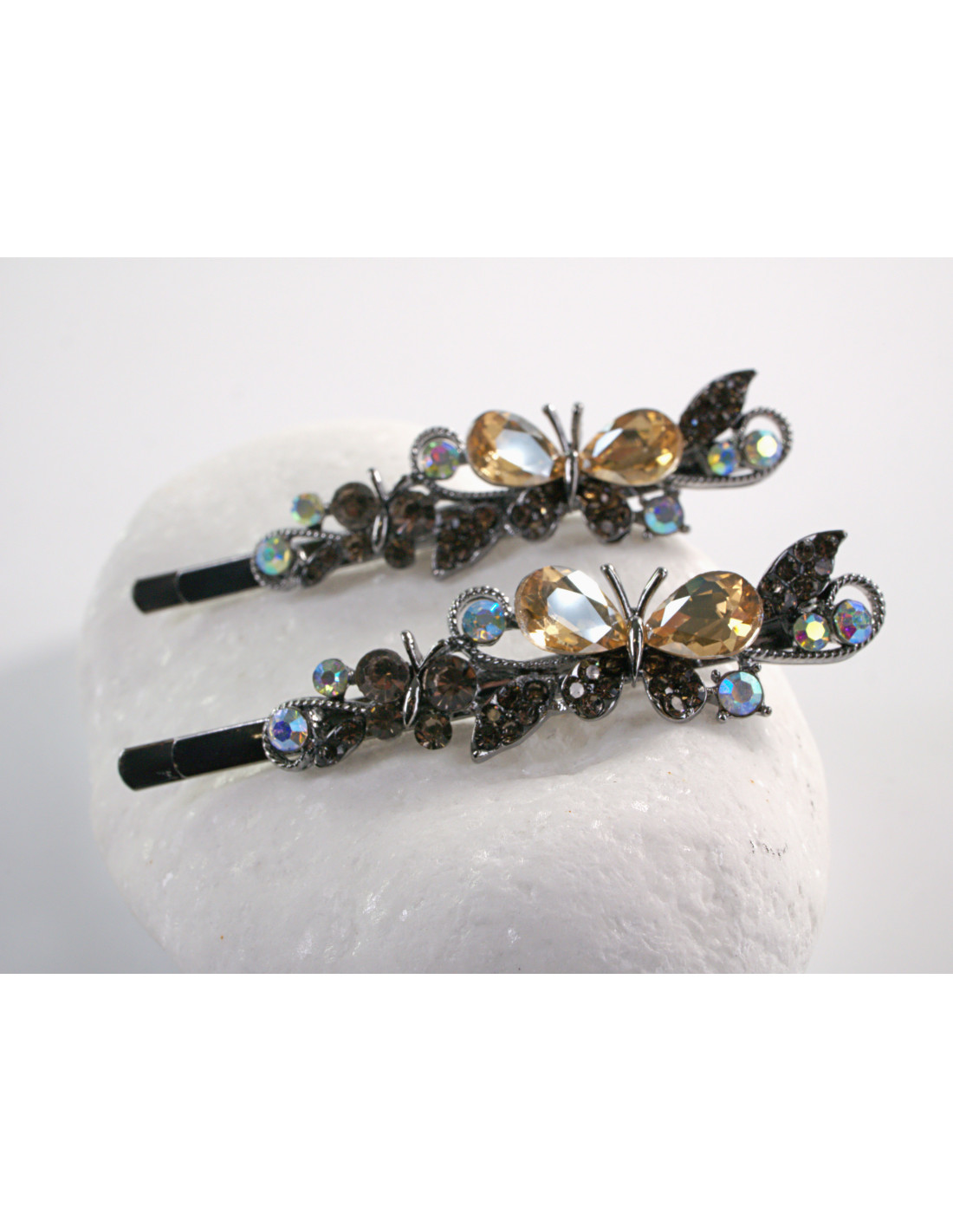 Wsuwka do włosów MOTYLEK z kryształkami 2 szt. Lolita Akcesoria MIODOWY