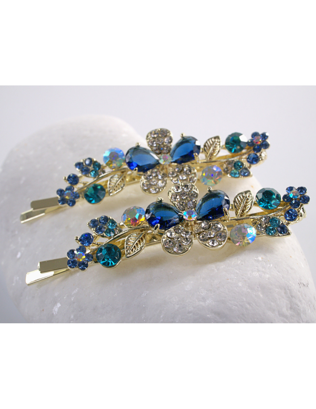 Wsuwka do włosów SZAFIROWY KWIATEK z kryształkami 2 szt. Lolita Akcesoria
