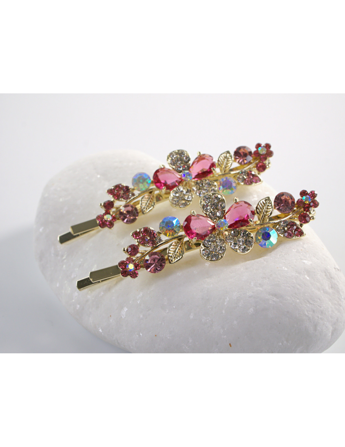 Wsuwka do włosów RÓŻOWY KWIATEK z kryształkami 2 szt. Lolita Akcesoria