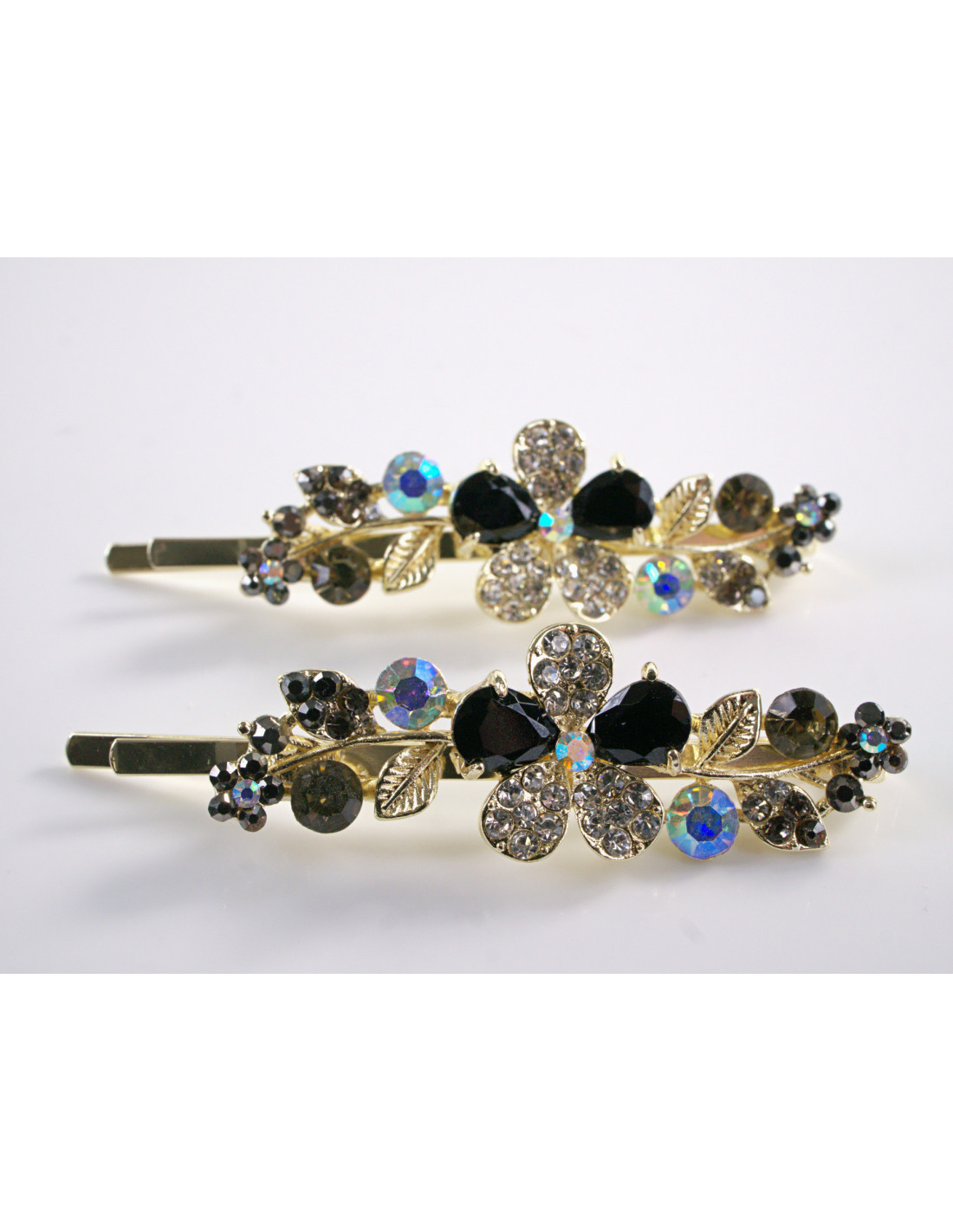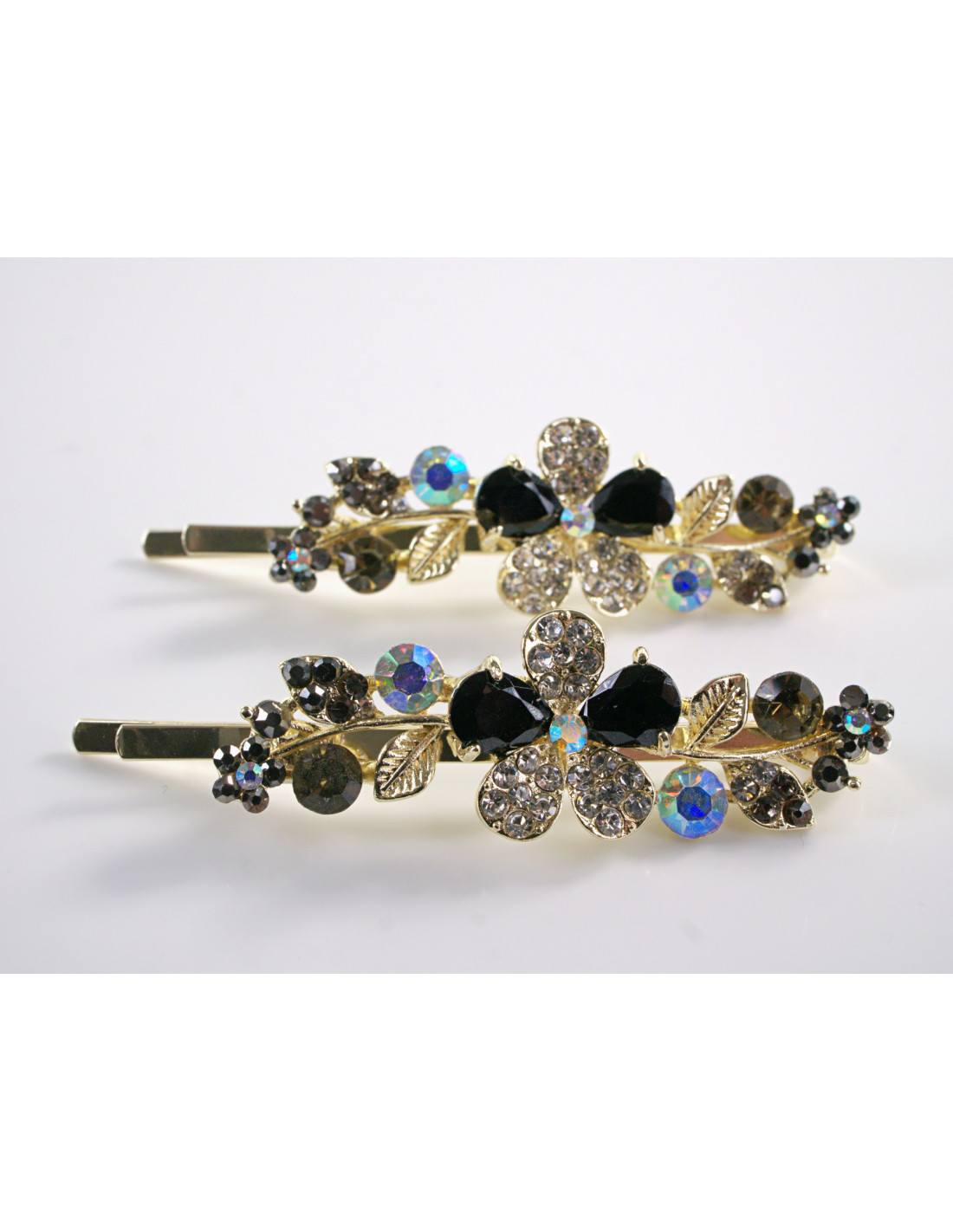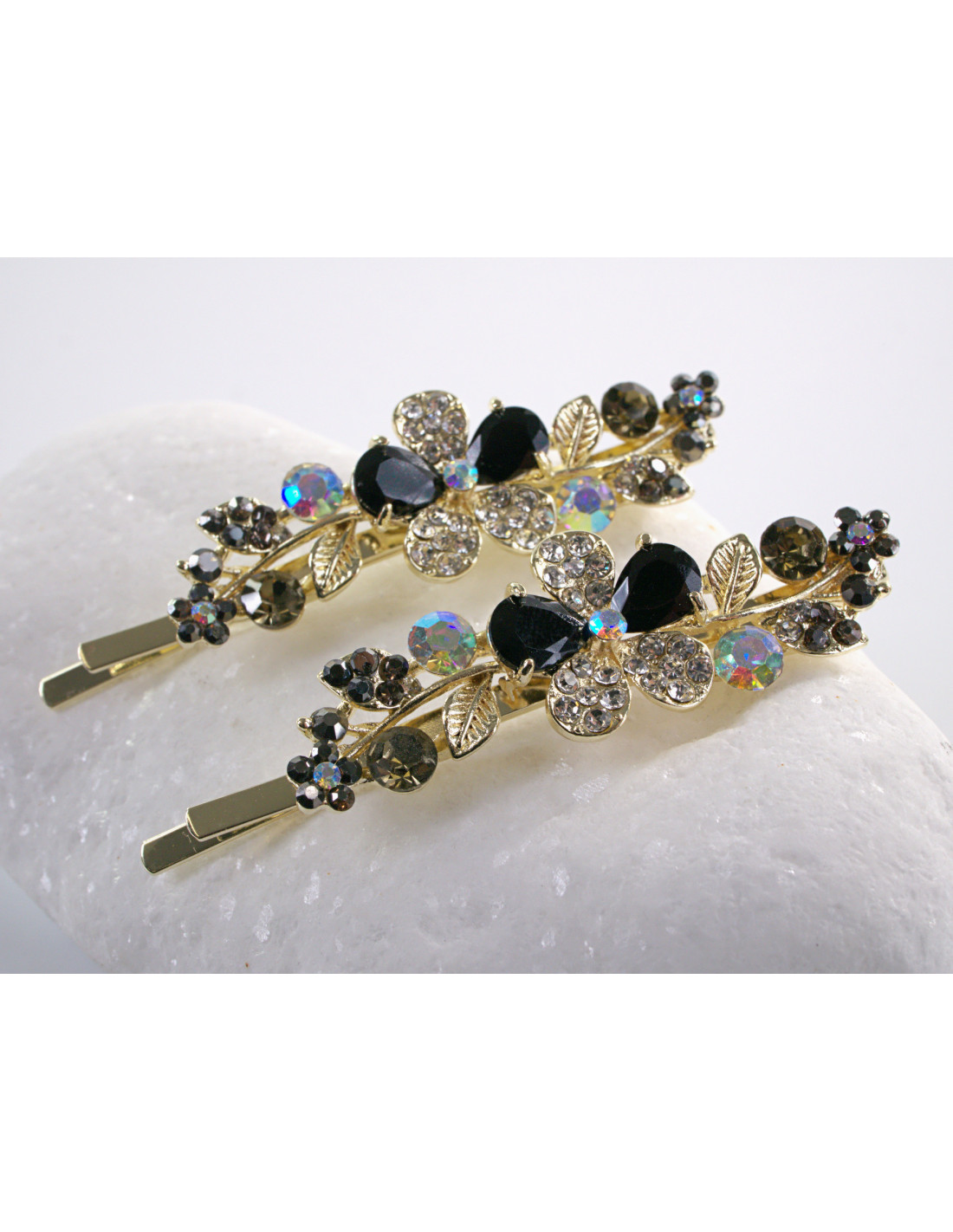 Wsuwka do włosów CZARNY KWIATEK z kryształkami 2 szt. Lolita Akcesoria