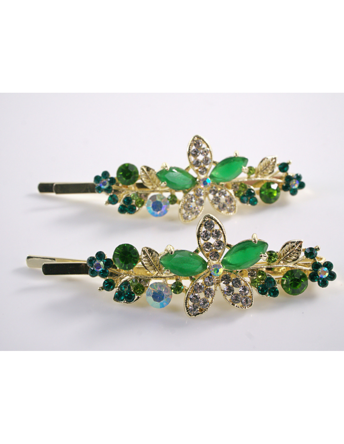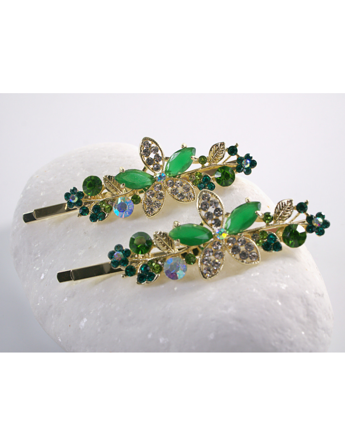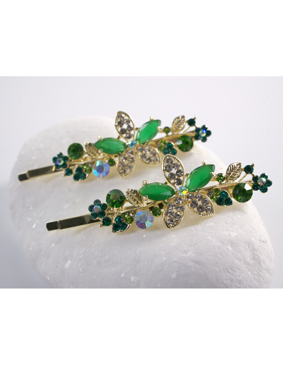 Wsuwka do włosów SZMARAGDOWY KWIAT  z kryształkami 2 szt. Lolita Akcesoria