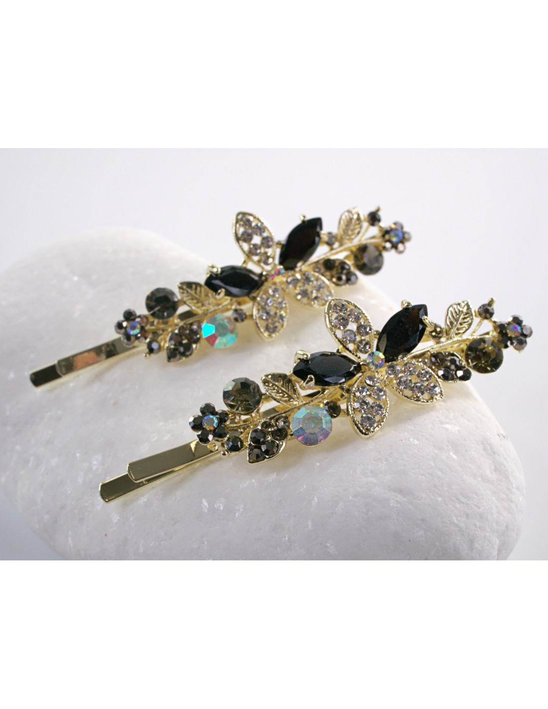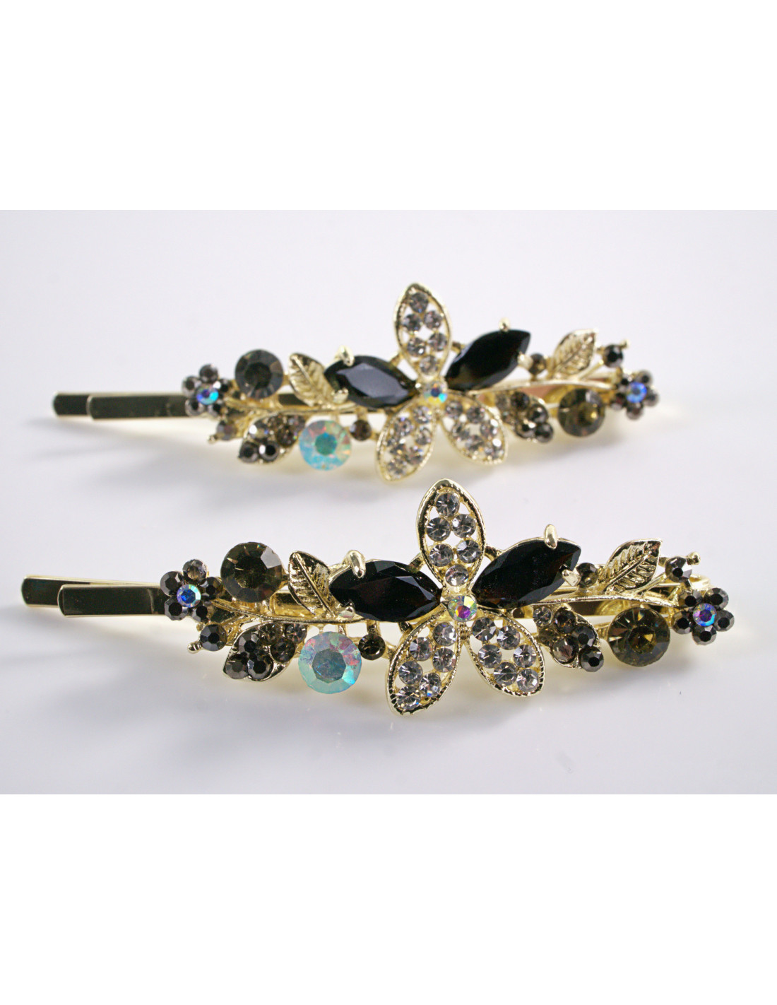 Wsuwka do włosów CZARNY KWIATEK  z kryształkami 2 szt. Lolita Akcesoria