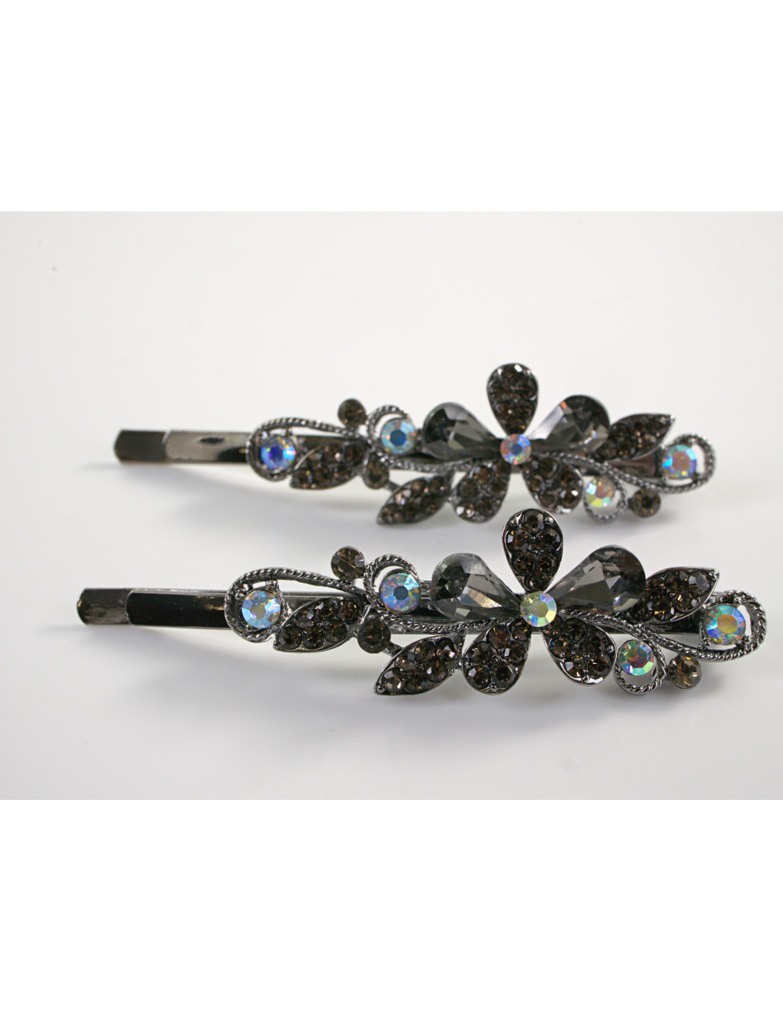 Wsuwka do włosów z KWIATKI z kryształkami 2 szt. Lolita Akcesoria GRAFITOWY
